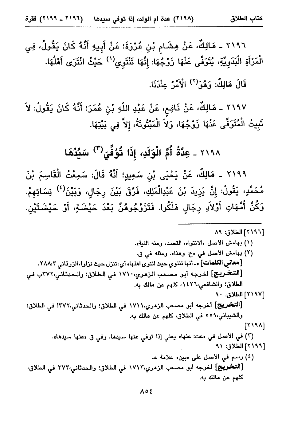 ٢١٩٦ - مَالِكٌ، عَنْ هِشَامِ بْنِ عُرْوَةَ؛ عَنْ أَبِيهِ أَنَّهُ كَانَ يَقُولُ، فِي الْمَرْأَةِ الْبَدَوِيََةِ، يُتَوَفَّى عَنْهَا زَوْجُهَا: إِنَّهَا تَنْتَوِي (١) حَيْثُ انْتَوَى أَهْلُهَا.