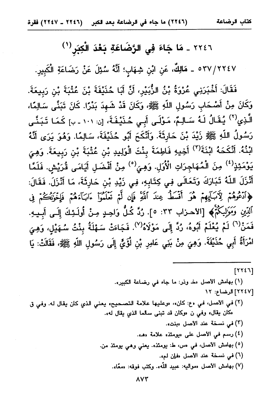٢٢٤٧/ ٥٣٧ - مَالِكٌ، عَنِ ابْنِ شِهَابٍ؛ أَنَّهُ سُئِلَ عَنْ رَضَاعَةِ الْكَبِيرِ.