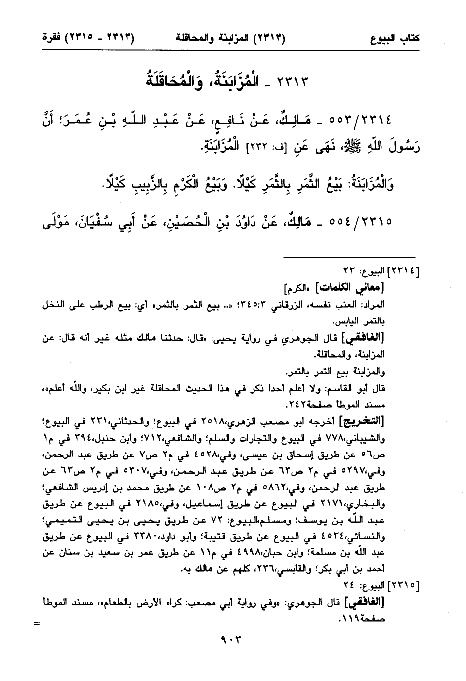 ٢٣١٥/ ٥٥٤ - مَالِكٌ، عَنْ دَاوُدَ بْنِ الْحُصَيْنِ، عَنْ أَبِي سُفْيَانَ، مَوْلَى ⦗٩٠٤⦘ ابْنِ أَبِي أَحْمَدَ، عَنْ أَبِي سَعِيدٍ الْخُدْرِيِّ؛ أَنَّ رَسُولَ اللهِ صلى الله عليه وسلم، نَهَى عَنِ [ق: ١٤٩ - ب] الْمُزَابَنَةِ، وَالْمُحَاقَلَةِ.