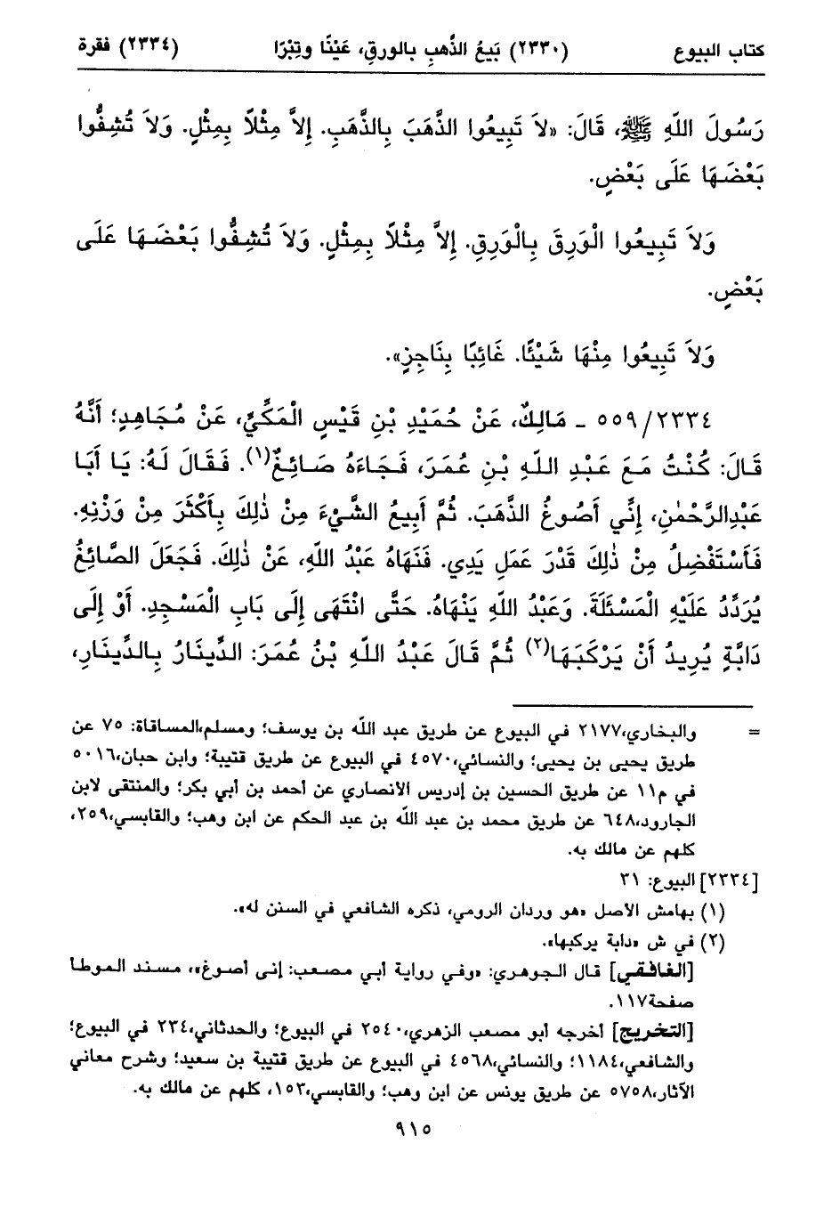 أخرجه أبو مصعب الزهري، ٢٥٤٠ في البيوع؛ والحدثاني، ٢٣٤ في البيوع؛ والشافعي، ١١٨٤؛ والنسائي، ٤٥٦٨ في البيوع عن طريق قتيبة بن سعيد؛ وشرح معاني الآثار، ٥٧٥٨ عن طريق يونس عن ابن وهب؛ والقابسي، ١٥٣، كلهم عن مالك به.