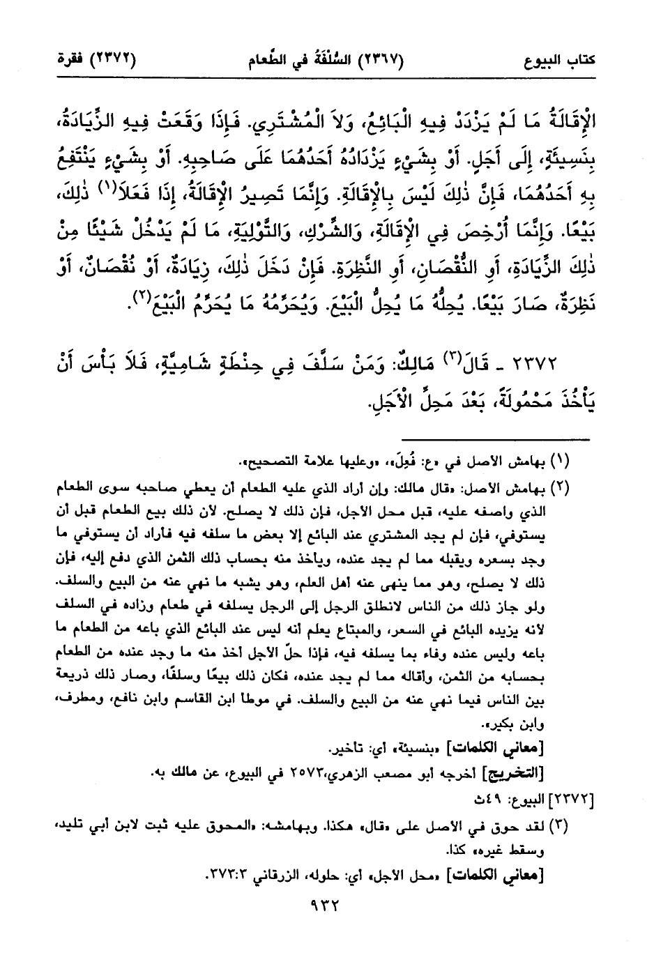 «محل الأجل» أي: حلوله، الزرقاني ٣: ٣٧٣