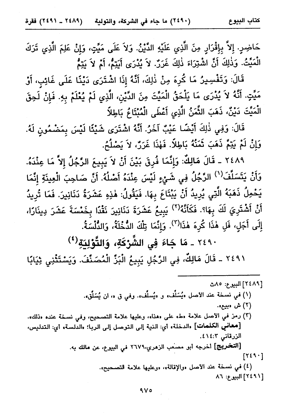 ٢٤٩٠ - مَا جَاءَ فِي الشِّرْكَةِ، وَالتَّوْلِيَةِ (١)