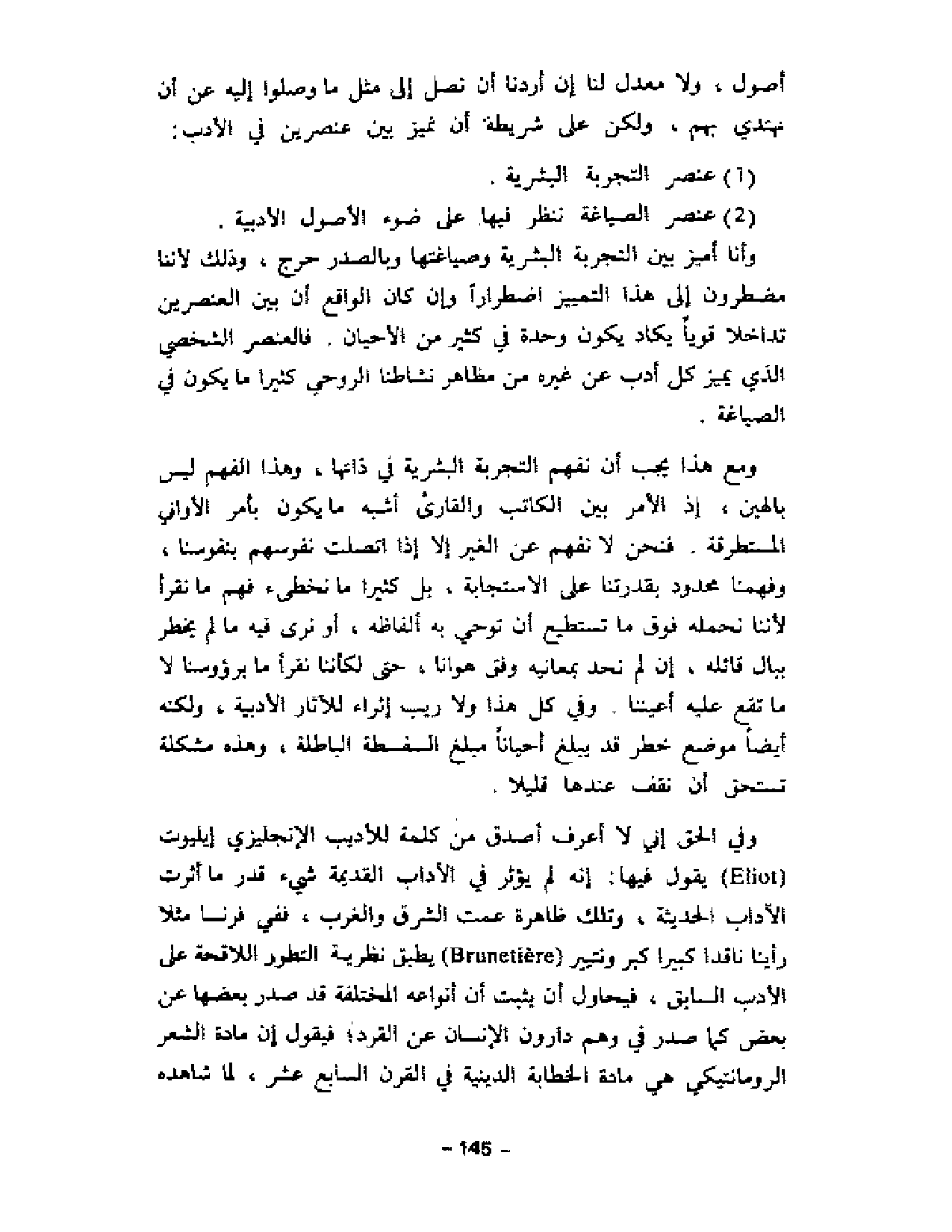 والذي أدعو إليه هو استقلال الأدب عن غيره من مظاهر نشاطنا الروحي، استقلاله بموضوعه ومناهجه، ولي في استقلال الفلسفة التي كانت تشمل قديما كل أنواع المعرفة أسوة حسنة. وأما ما يدعو إليه الصديق فذلك ما لا علم به؛ لأنه هو نفسه لم يستقر به على تحديده، وكم أود لو واجهنا الصديق برأي متميز يناهض به رأيي، إذن لاهتزت جوانحي فرحا، ولقلت ها نحن قد نضجت ملكاتنا فأصبحت لنا اتجاهات نؤيدها ويؤيدها معنا من يرى الأشياء كما نراها، وبهذا تكون لنا مدارس أدبية كما كانت لغيرنا من الشعوب.
