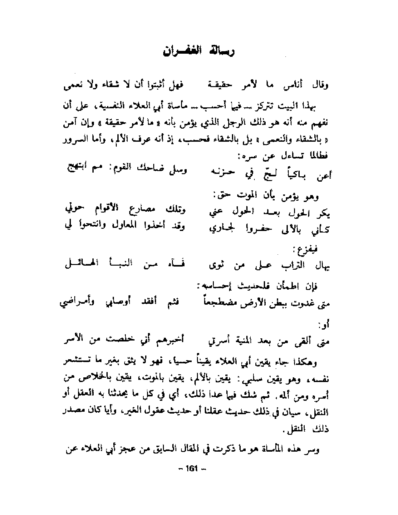 قد اختار المضارع1 "تكون" على الماضي "كان"؛ لأن المضارع هنا نحس في دلالته معنى الحالة المستمرة المنسحبة من الماضي إلى الحاضر فالمستقبل، والشاعر ود عندما نبا الدهر لو تكون داره على الأهواز بنجوة، تكون حتى قبل نبو الدهر، تكون وتستمر كذلك؛ لأن الدهر قد أثبت بنبوة تلك المرة أنه قادر على الغدر في كل حين، ومن الخير أن نقدر ذلك الغدر في كل حين. وإذن المفاضلة بين الماضي والمضارع ليست مفاضلة بين ألفاظ بل بين معان، وعلى الأصح بين حالات نفسية بأكملها، ثم إن شاعرنا قد نكر "دهر" وهو بهذا يفرد الدهر فيجعله دهرا خاصا به، دهرا غدارا لا الدهر دهر الناس كافة. نبا دهر ابتلاه به القضاء المحتوم، وإذا كان تنكير الدهر، وهو الشيء الواحد المعرف بوحدته، يفيد الإفراد، فإن تنكير صاحب وأعداء ونصير يفيد الإطلاق ويشعرنا بضيق الشاعر فهو ينكر كل صاحب لما كان من غدر أولئك الصحاب، وهو يرى أن كل عدو قد سلط وأن كل نصير قد غاب، تنكير المتعدد أفاد الإطلاق، والأمر في تنكير "مقادير وأمور" يشبه تنكير "دهر" فهو يخصصهما بالشاعر ويجعلها وقفا عليه، وإذن فنحن أمام معان مختلفة وألوان نفسية متباينة ندرك بعضها بعقولنا ونحس ألطفها بقلوبنا، وهذا الإحساس هو أساس الذوق عند ناقدنا العظيم.