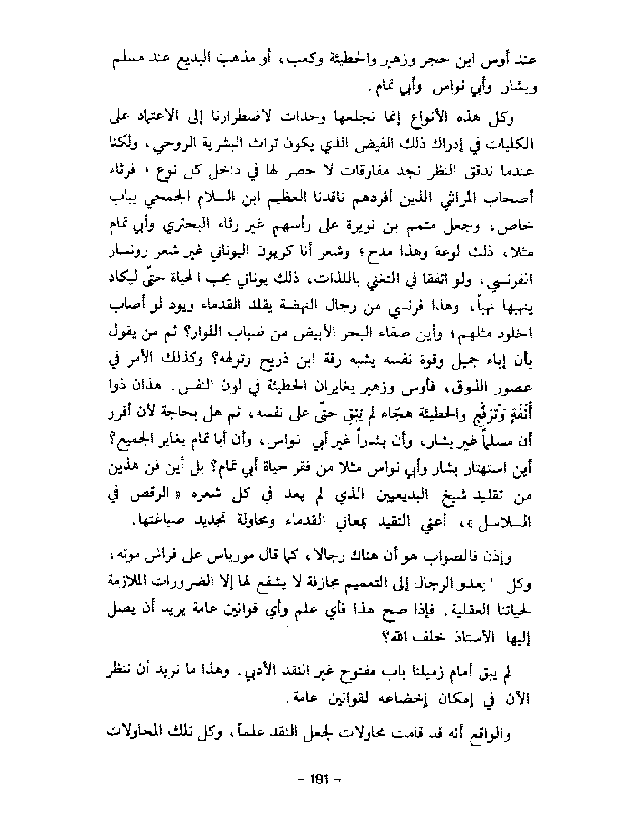 ليسمح لي القارئ بأن أقول: إنني قد حاولت حل هذه الأشكال في بحث طويل كتبته باللغة الفرنسية بعد دراسة وتحليل لثلاثة أبحر من الشعر العربي بمعمل الأصوات بباريس، هي الطويل والبسيط والوافر1.
