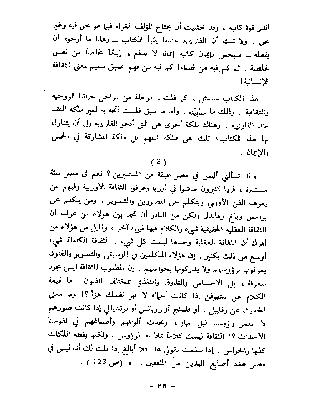 وأخيرًا -وهذا هو السبب المهم- لأنهم قوم مثقفون، قد أمعنوا النظر في الثقافات الغربية التي لا غنى لنا اليوم عنها، وعرفوا كيف يستفيدون منها بعد أن هضموها في لغاتها الأصلية، فهم إذن ليسوا كأولئك الذين يسرفون في في الغرور عن جهل وكسل، ظانين أن الأدب في متناول كل إنسان، وأن كلام منظوم شعر. الثقافة هي التي تشع في ألفاظ هؤلاء الشعراء، وإنك لتقرأ الجملة لهم فتحس أن خلفها ثروة من التفكير والإحساس.