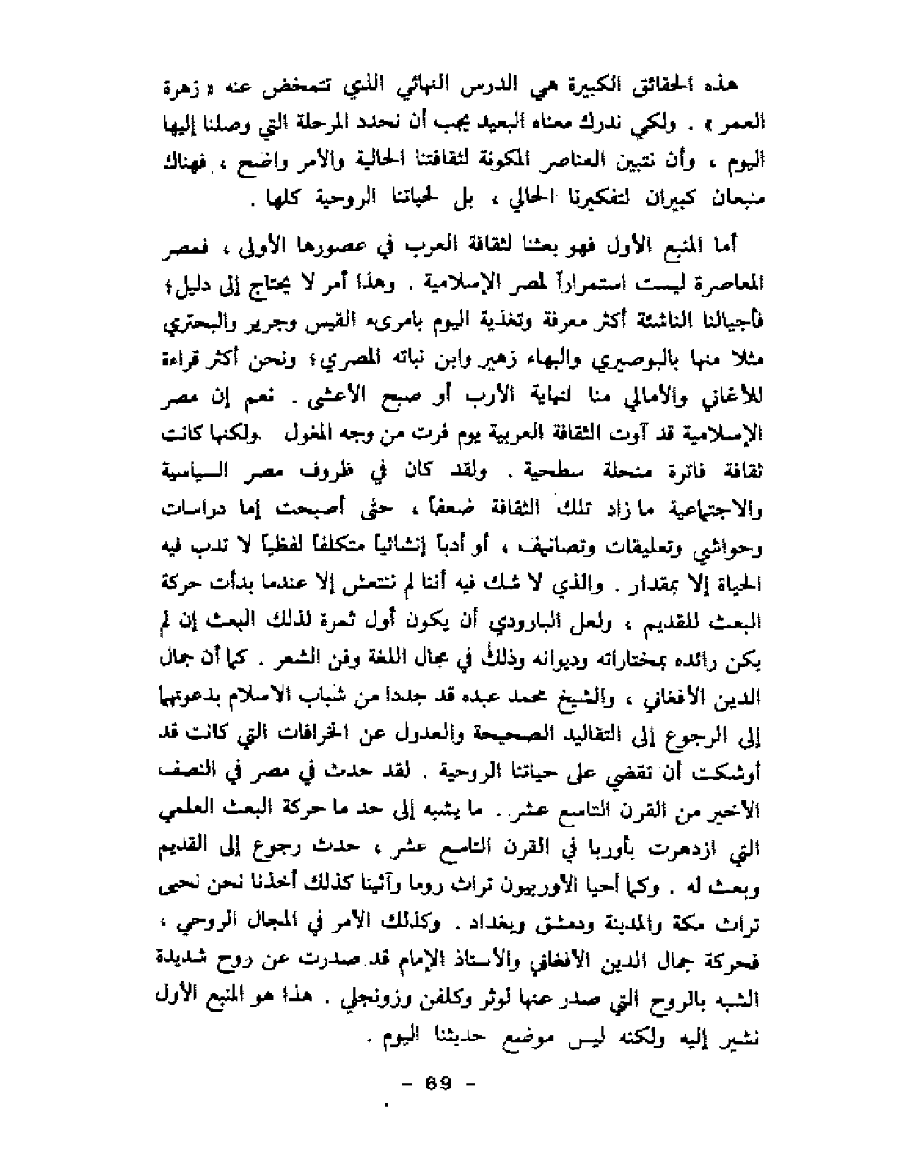 بلغني أن أمين مشرق قد قتلته سيارة بأمريكا فحزنت، وراجعت نفسي في سر ذلك الحزن، وهذا رجل ما رأيته قط، ولا حدثني عنه أحد؛ وإنما هي مصادفات الحياة ساقتني وأنا أطالب إلى كتاب به مختارات لشعراء المهجر، فتحت لنغماتهم نفسي، واصطحبت الكتاب إلى أوربا سنوات، وعدت بكتابي القديم كما ذهبت به، وإن تكن جلدته قد ضاعت وأوراقه الأولى قد تآكلت، وأصبحت لا أعرف له عنوانا ولكنني أفزع إليه كلما ضاق الصدر أو عض ألم، فأجد بين صفحاته من عبير الروح ما يحيي الإيمان.