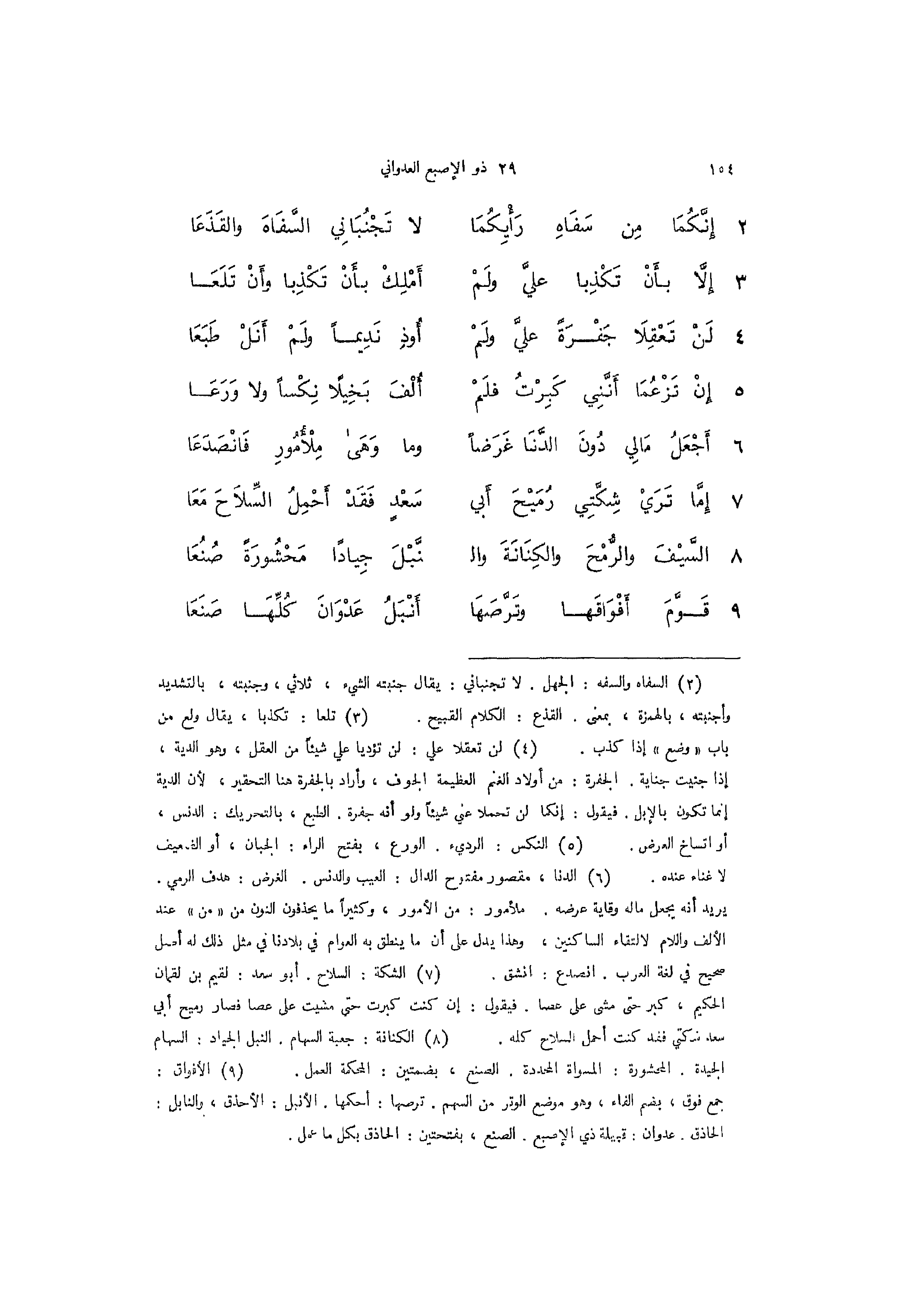 9 - (قَوَّمَ أَفْوَاقَها وتَرَّصَهَا ... أَنْبَلُ عَدْوَانَ كُلِّهَا صَنَعَا)