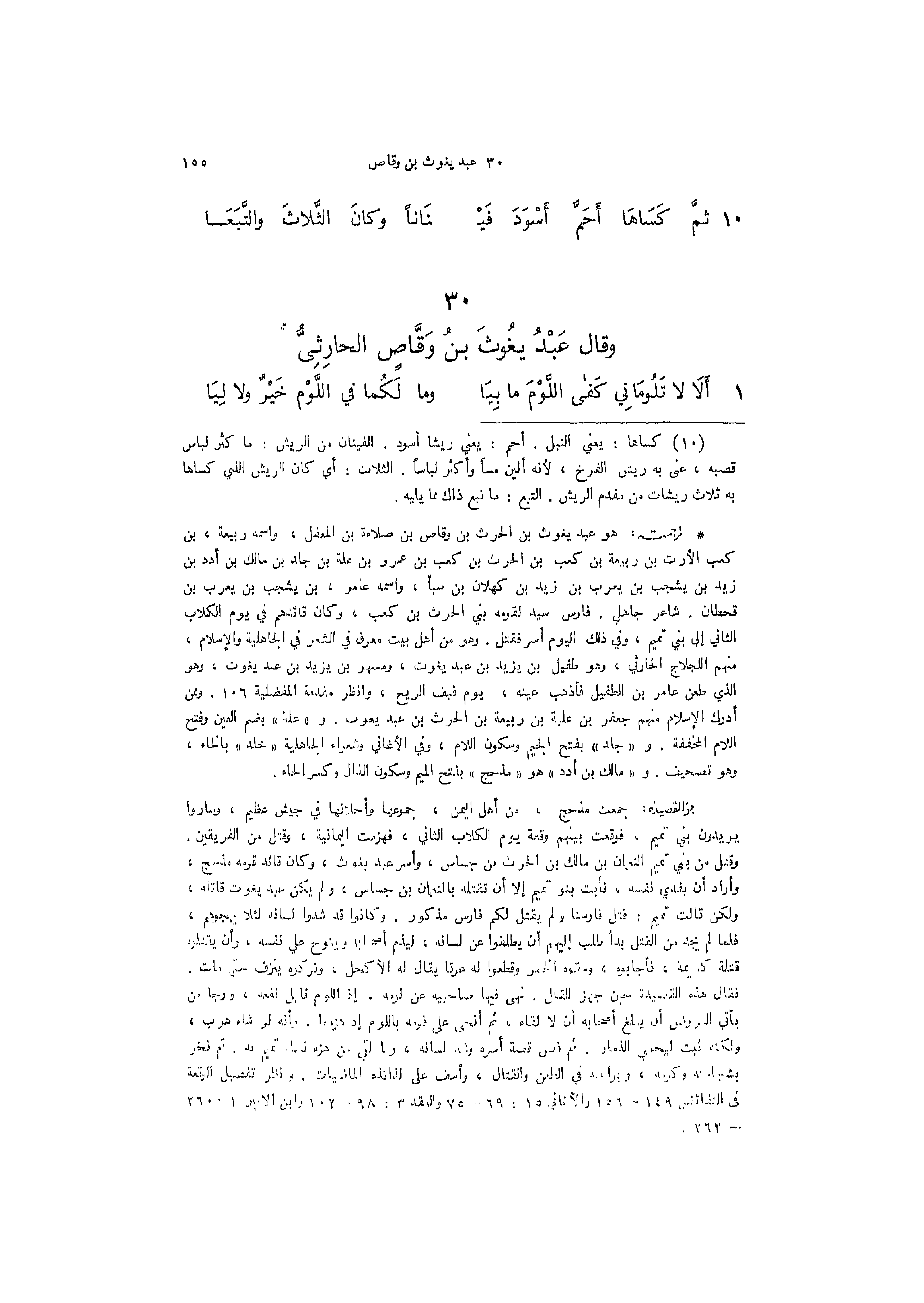 (30) وقال عبد يغوث بن وقاص الحارثي