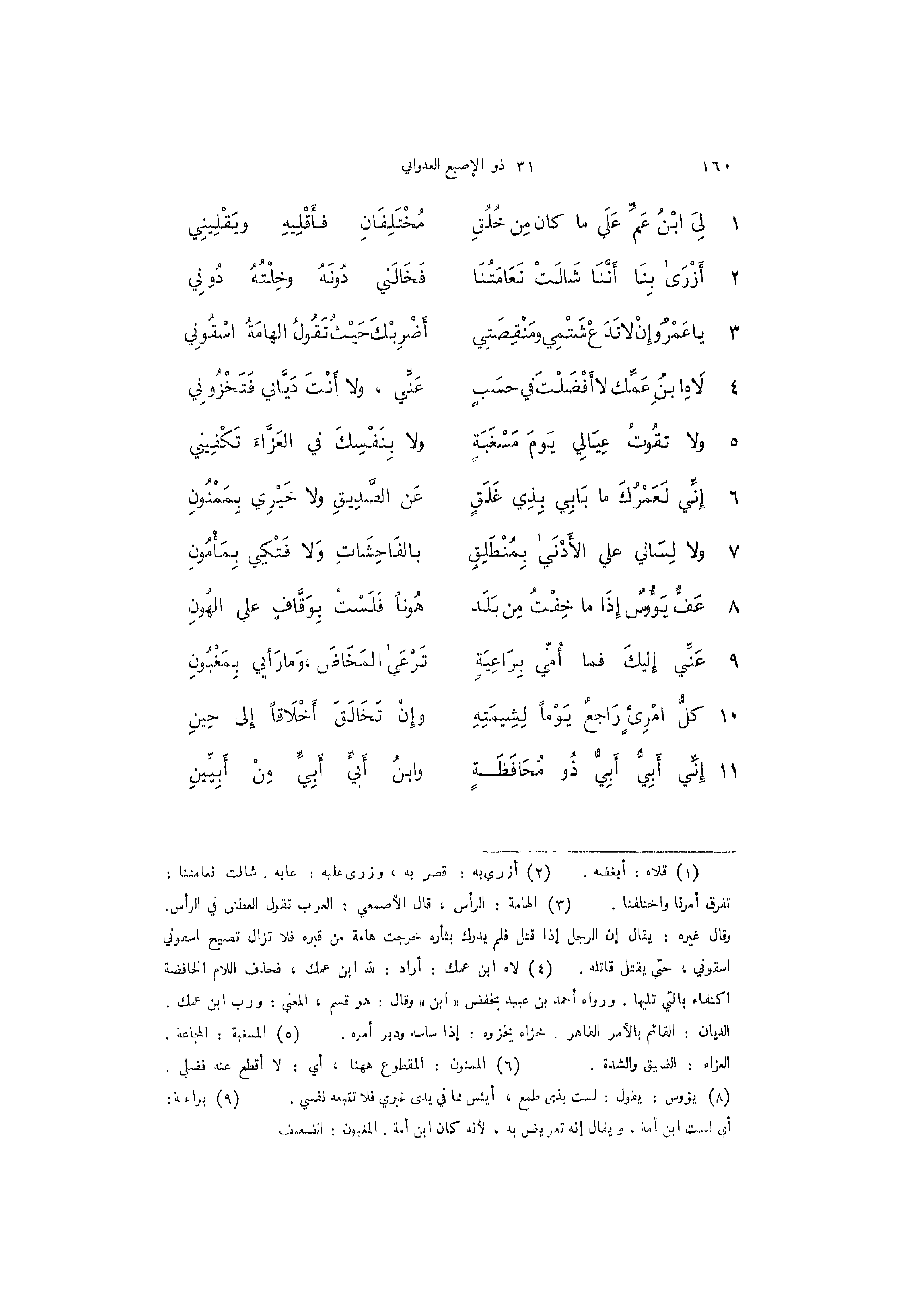 11 - (إِنِّي أَبِيٌّ أبي ذو محافظة ... وابن أبي أبي مِنْ أَبِيِّينِ)