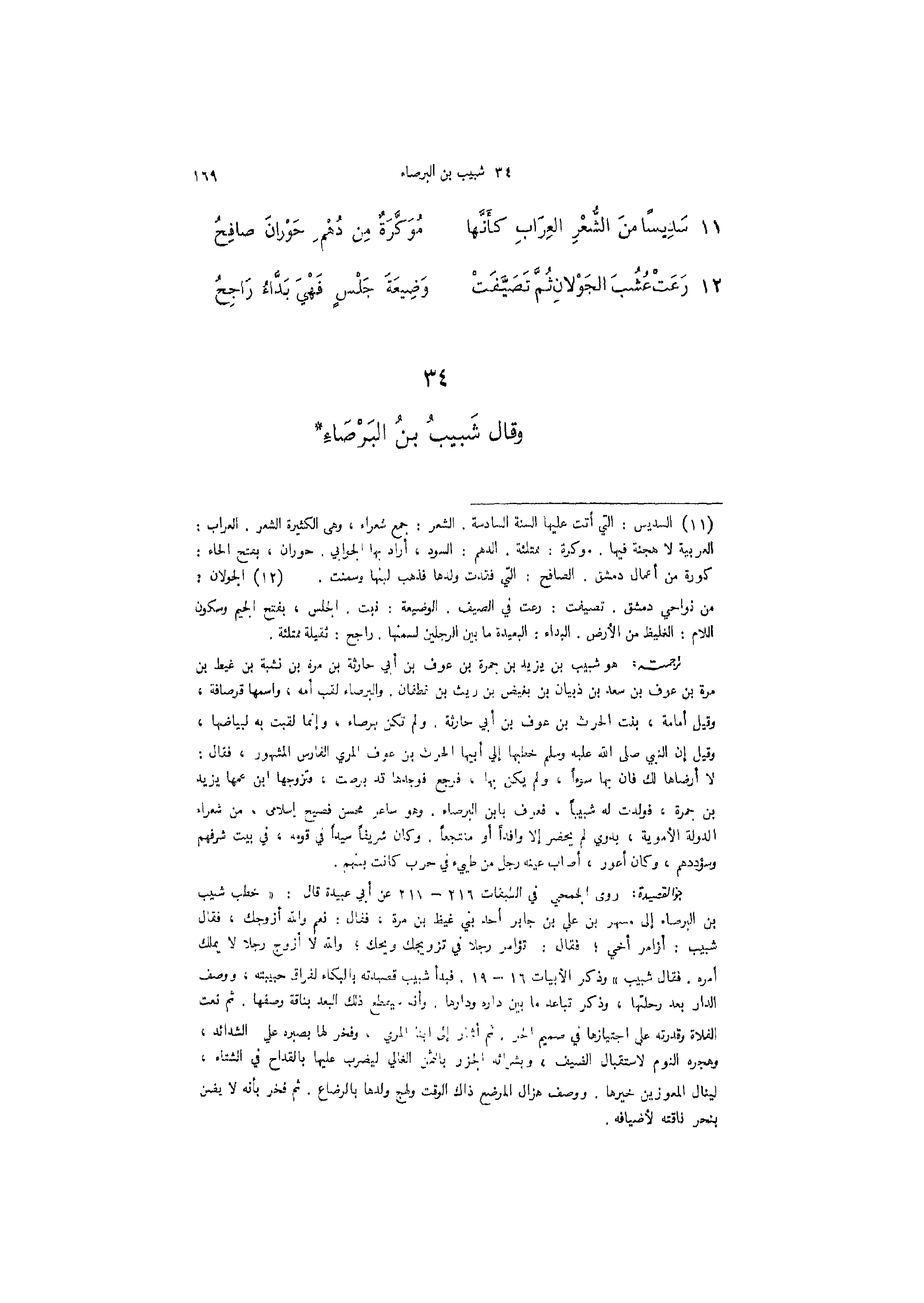 12 - (رَعَتْ عُشُبَ الجَوْلانِ ثُمَّ تَصَيَّفَتْ ... وَضِيعَةَ جَلْسٍ فَهْيَ بداء راجح)