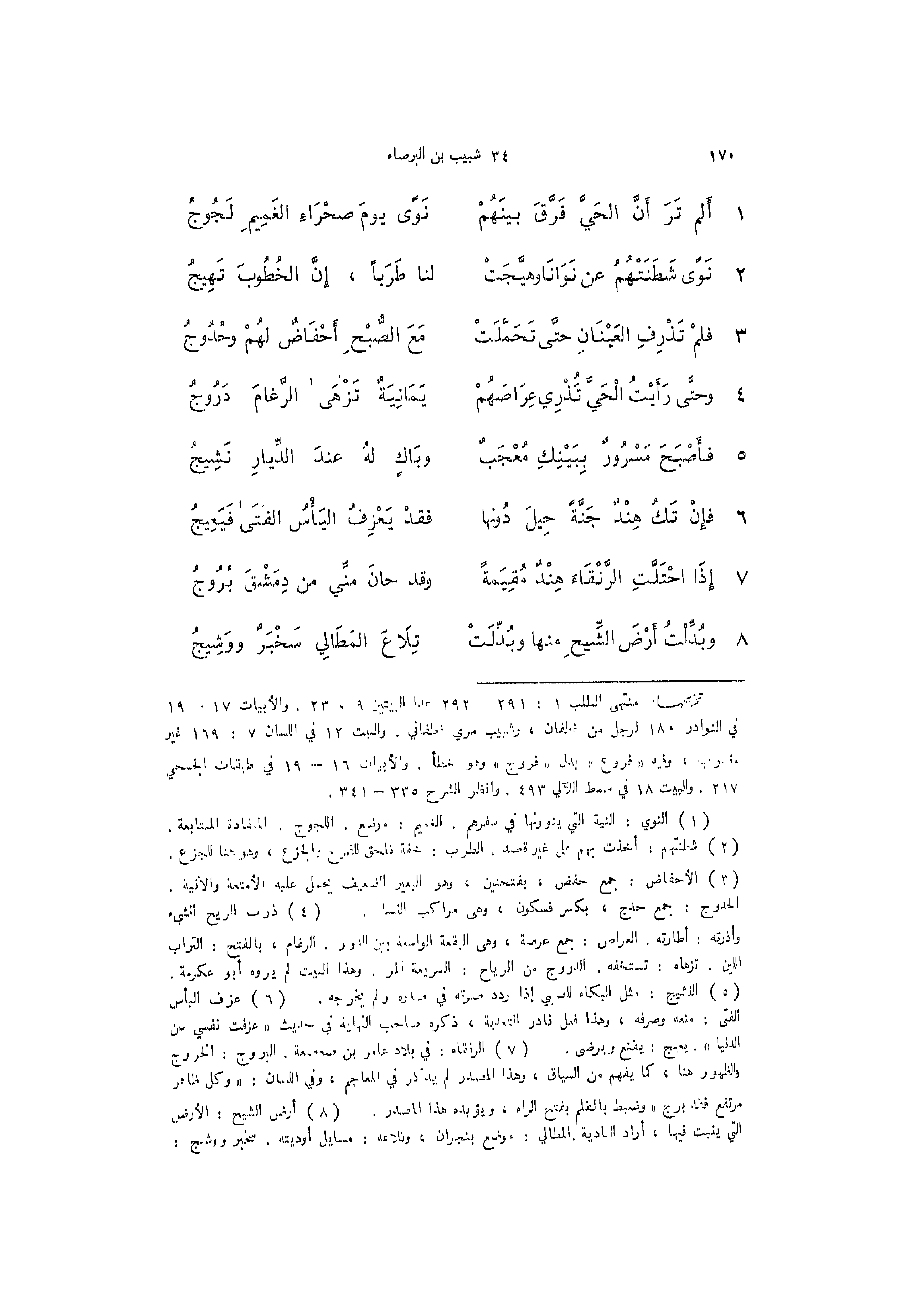 1 - (ألم تر أن الحَيَّ فَرَّقَ بينَهُمْ ... نَوىً يومَ صحْرَاءِ الغَمِيمِ لَجُوجُ)