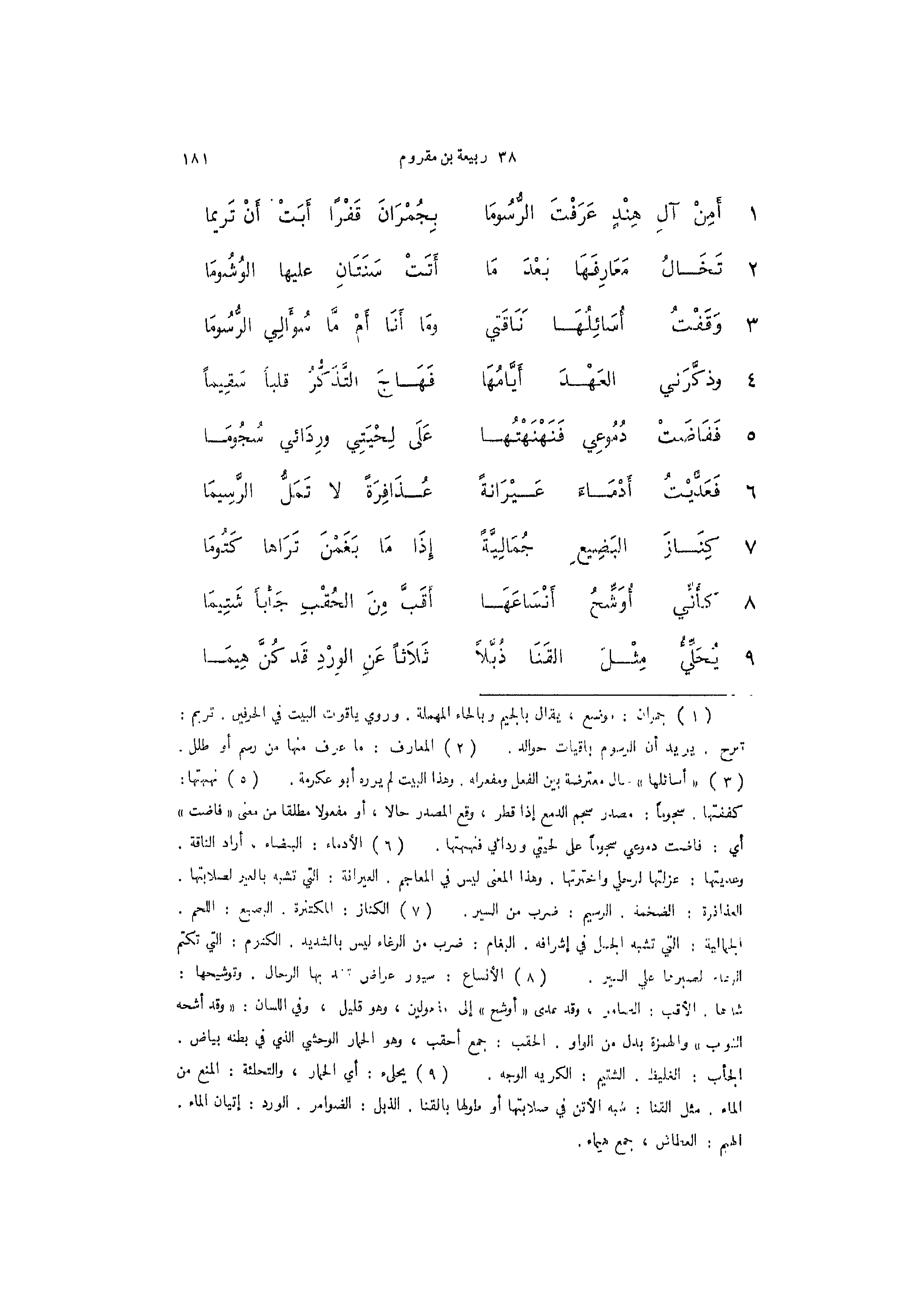 1 - (أَمِنْ آلِ هِنْدٍ عَرَفْتَ الرُّسُومَا ... بِجُمْرَانَ قَفْراً أَبَتْ أَنْ تَرِيما)