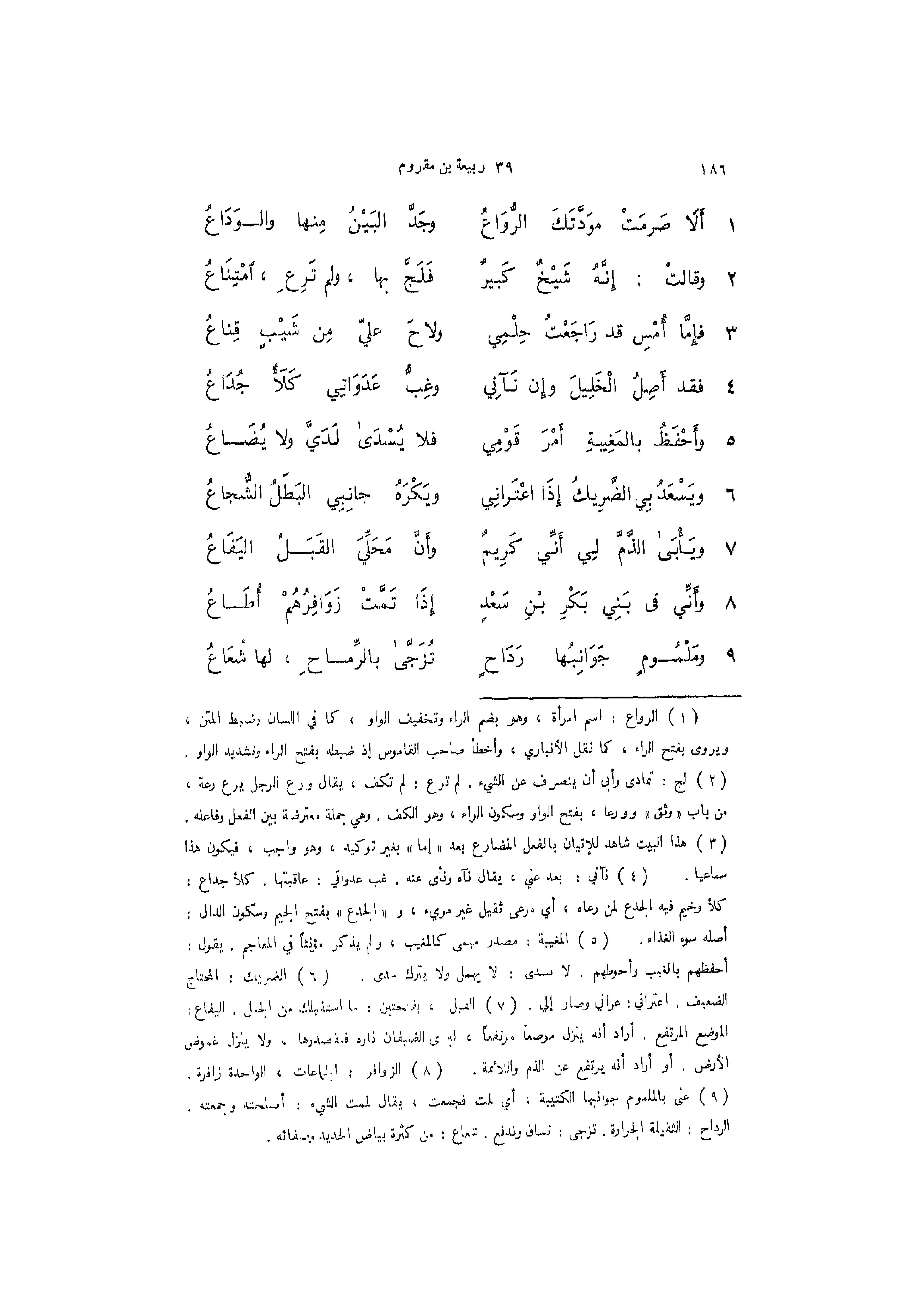 1 - (أَلاَ صَرَمَتْ موَدَّتَكَ الرُّوَاعُ ... وجَدَّ البَيْنُ مِنها والوَدَاعُ)