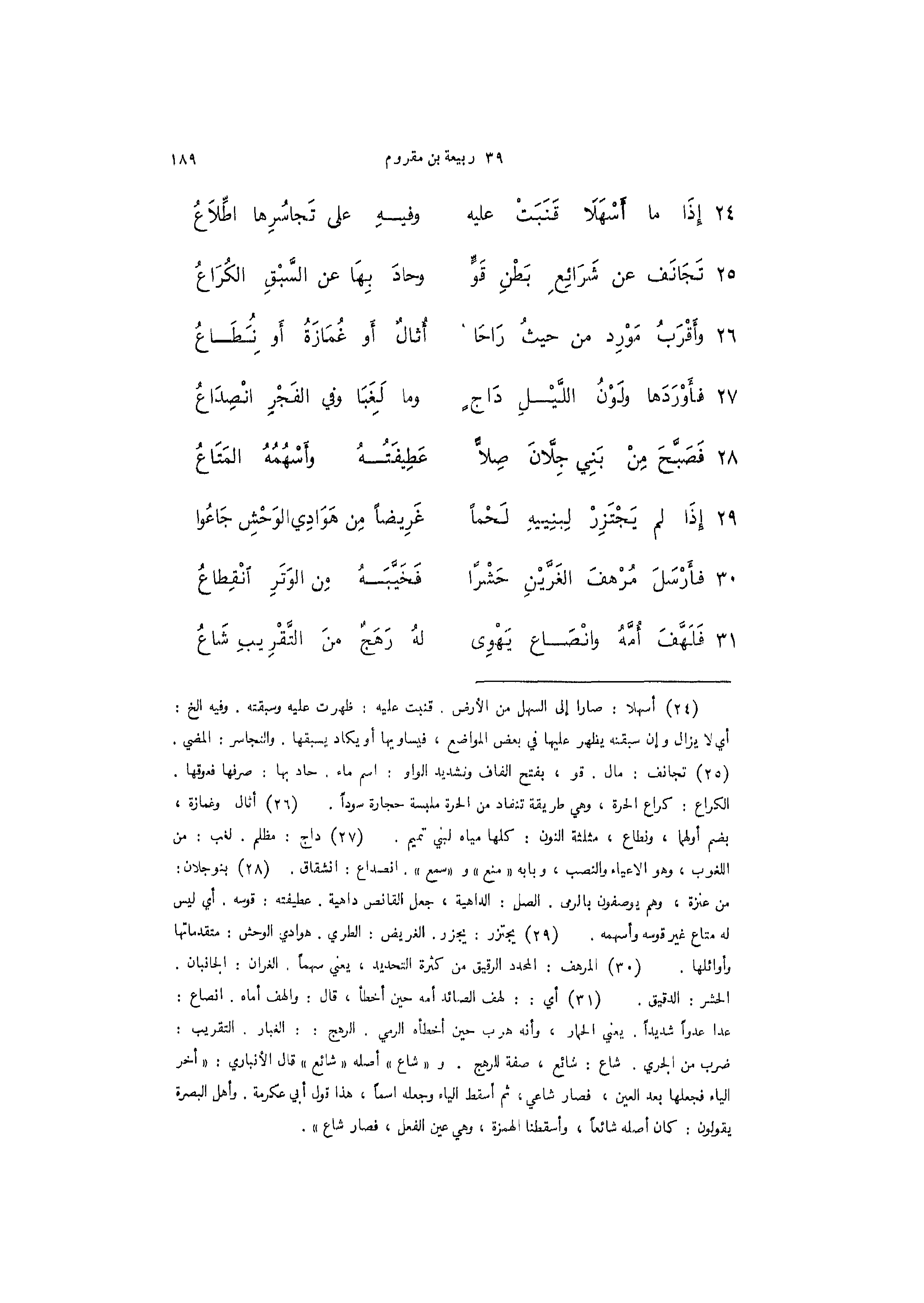 24 - (إِذَا ما أَسْهَلاَ قَنَبَتْ عليه ... وفيهِ على تَجاسُرِها أطِّلاَعُ)
