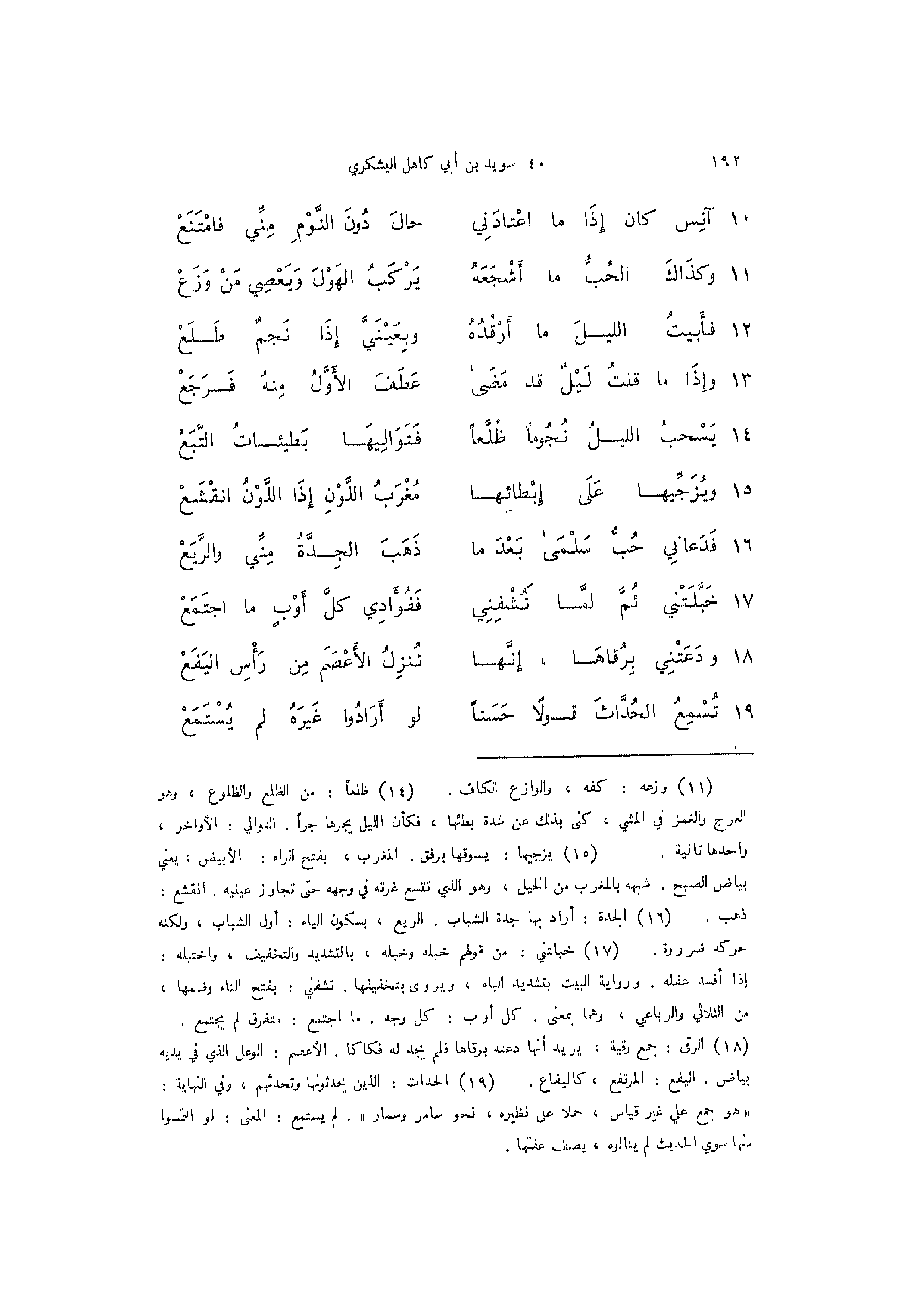 14 - (يَسْحبُ الليلُ نُجُوماً ظُلَّعاً ... فَتَوَالِيهَا بَطيئاتُ التَّبَعْ)