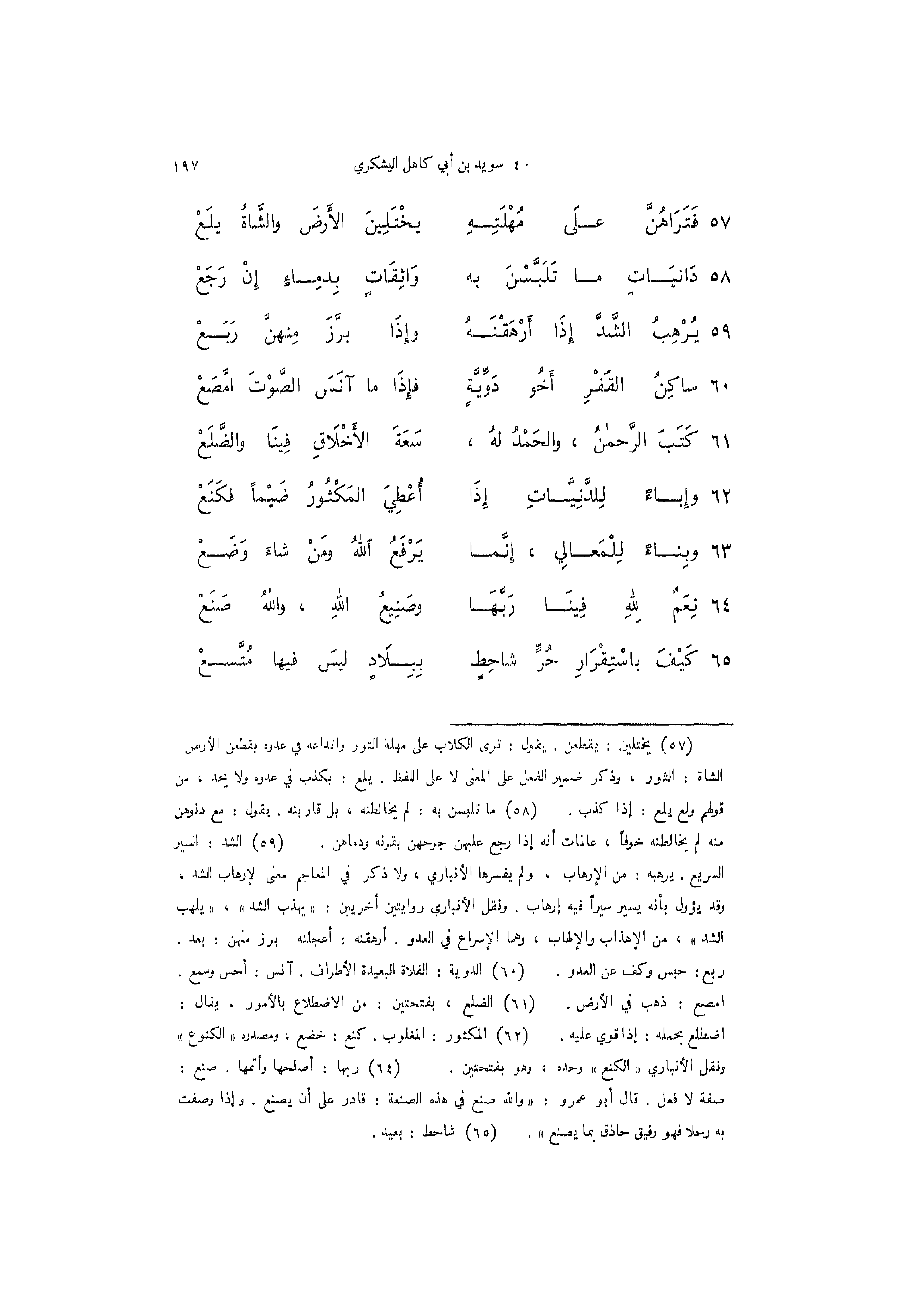 57 - (فَتَرَاهُنَّ علَى مُهْلَتِهِ ... يخْتَلِينَ الأَرضَ والشَّاةُ يلَعْ)