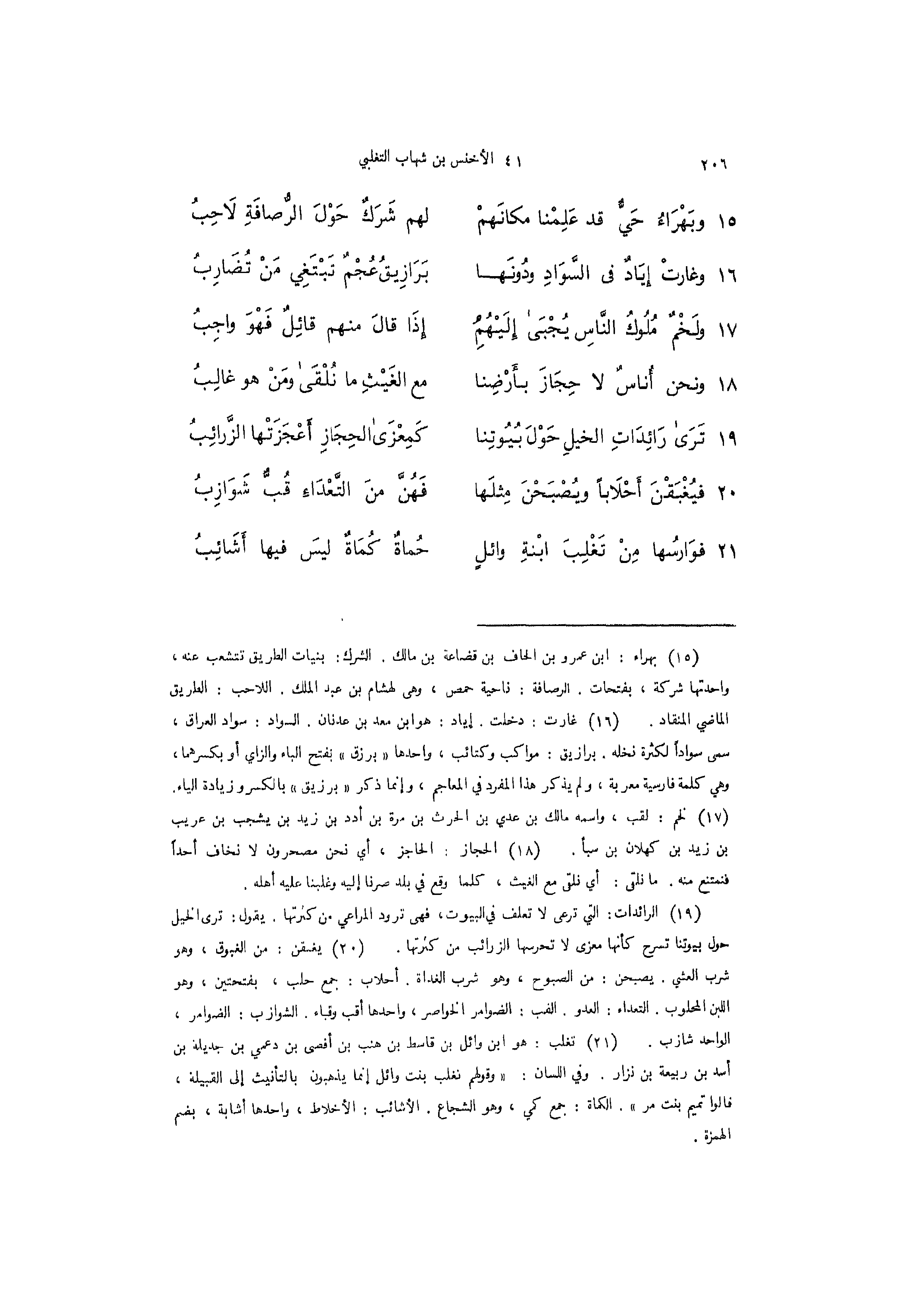 15 - (وبَهْرَاءُ حَيٌّ قد عَلِمْنا مكانَهمْ ... لهم شَرَكٌ حَوْلَ الرُّصَافَةِ لاَحِبُ)