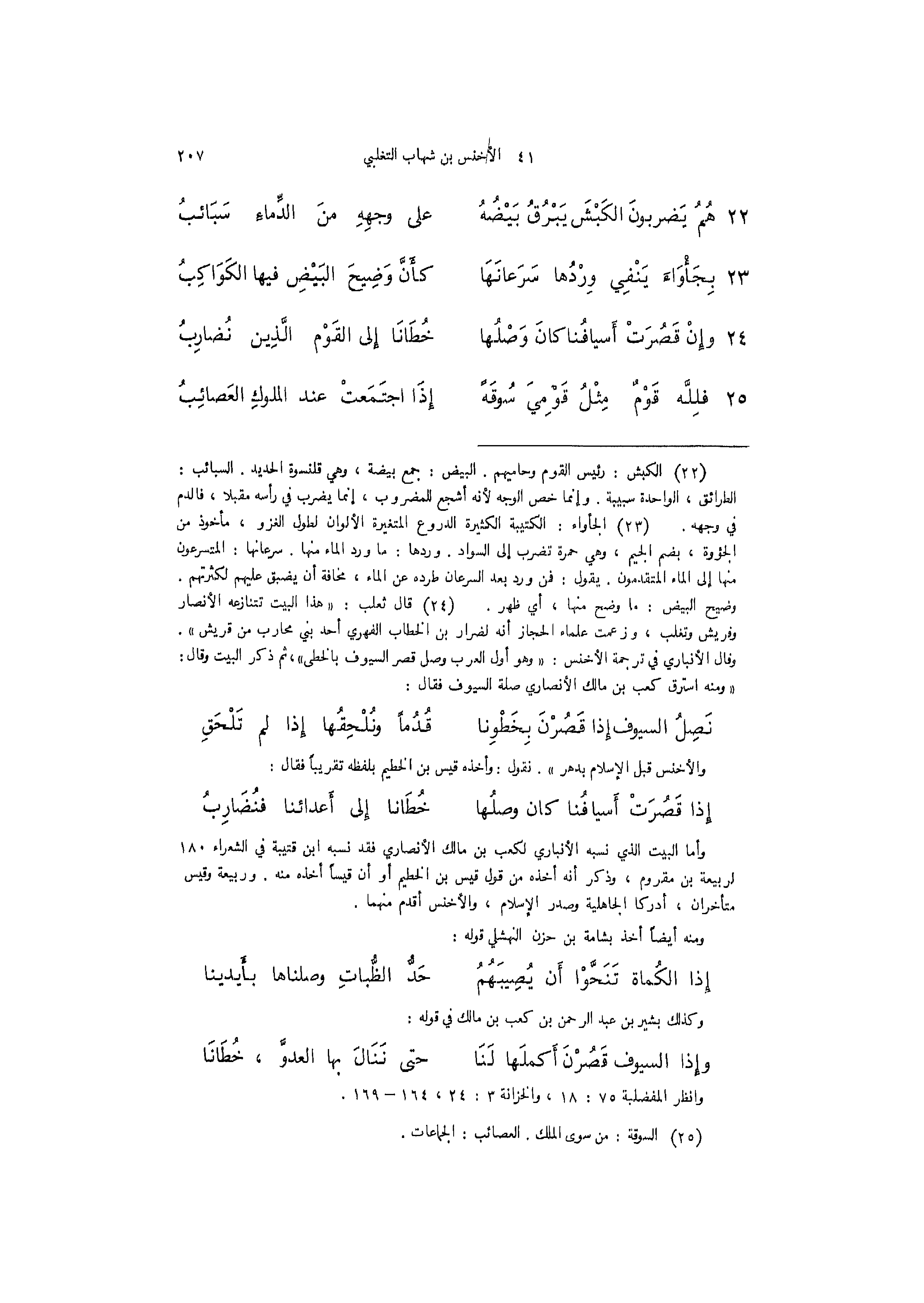 22 - (هُمُ يَضربونَ الكَبْشَ يَبْرُقُ بَيْضُهُ ... على وجهِهِ منَ الدِّماءِ سَبَائِبُ)