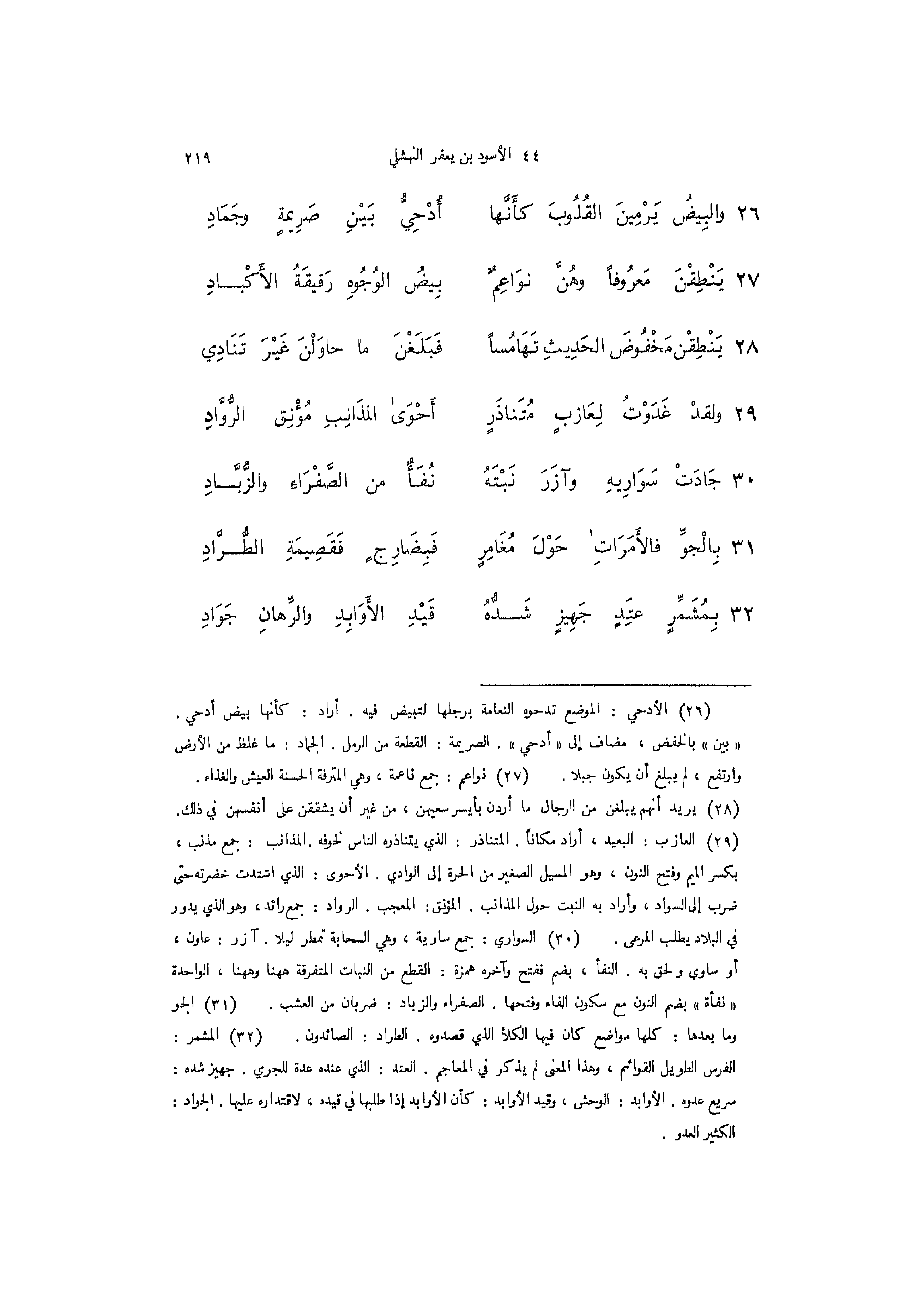 27 - (يَنْطِقْنَ مَعرُوفاً وهُنَّ نوَاعِمٌ ... بِيضُ الوُجُوهِ رَقيقَةُ الأَكْبادِ)
