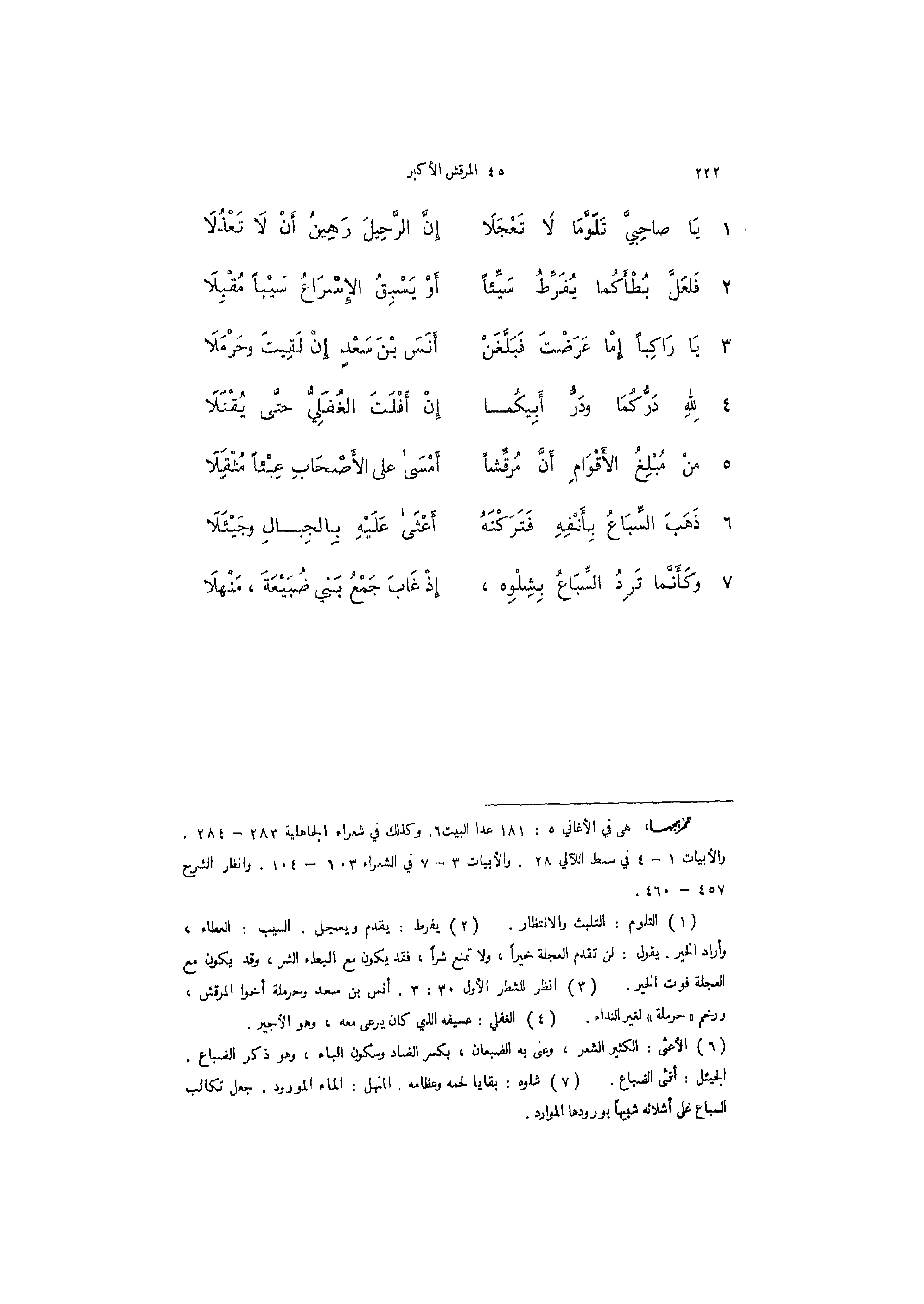 5 - (منْ مُبْلِغُ الأَقْوَامِ أَنَّ مُرَقِّشاً ... أَمْسَى على الأَصْحَابِ عِبْئاً مُثْقِلاً)