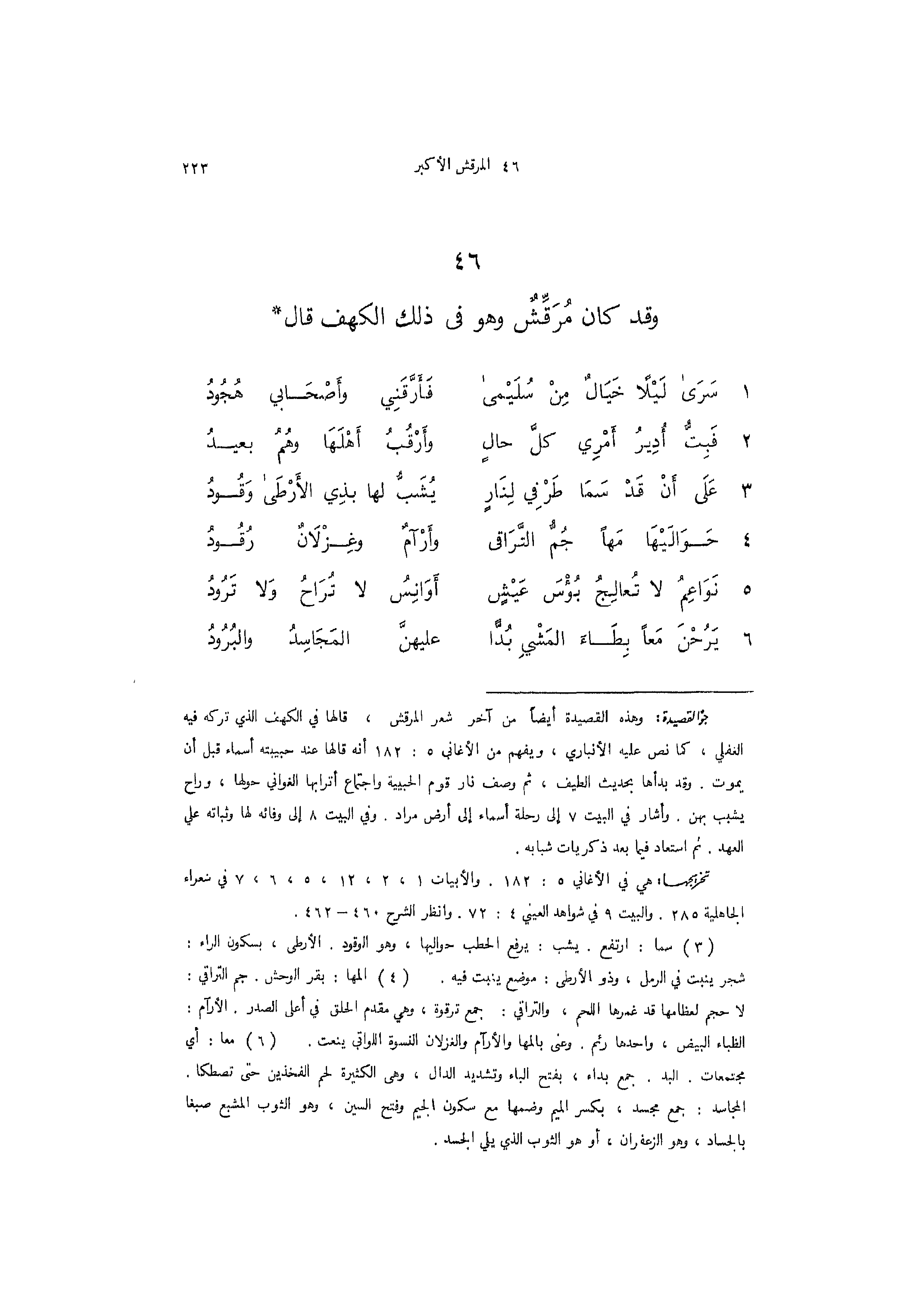 (46) وقد كان مرقش وهو في ذلك الكهف قال 1