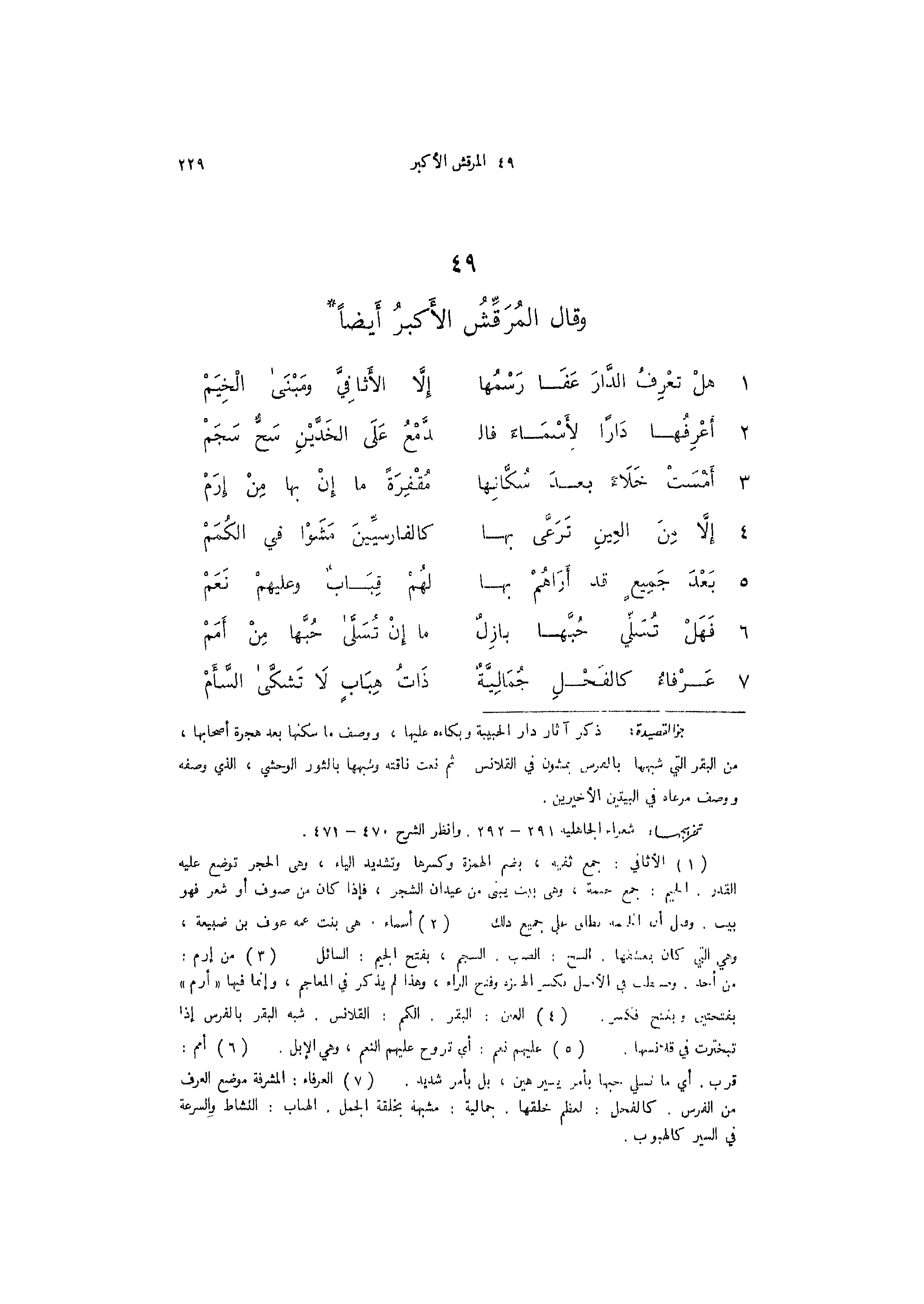 1 - (هلْ تعْرِفُ الدَّارَ عَفَا رَسْمُها ... إِلاَّ الأَثافِيَّ ومَبْنَى الْخِيَمْ)