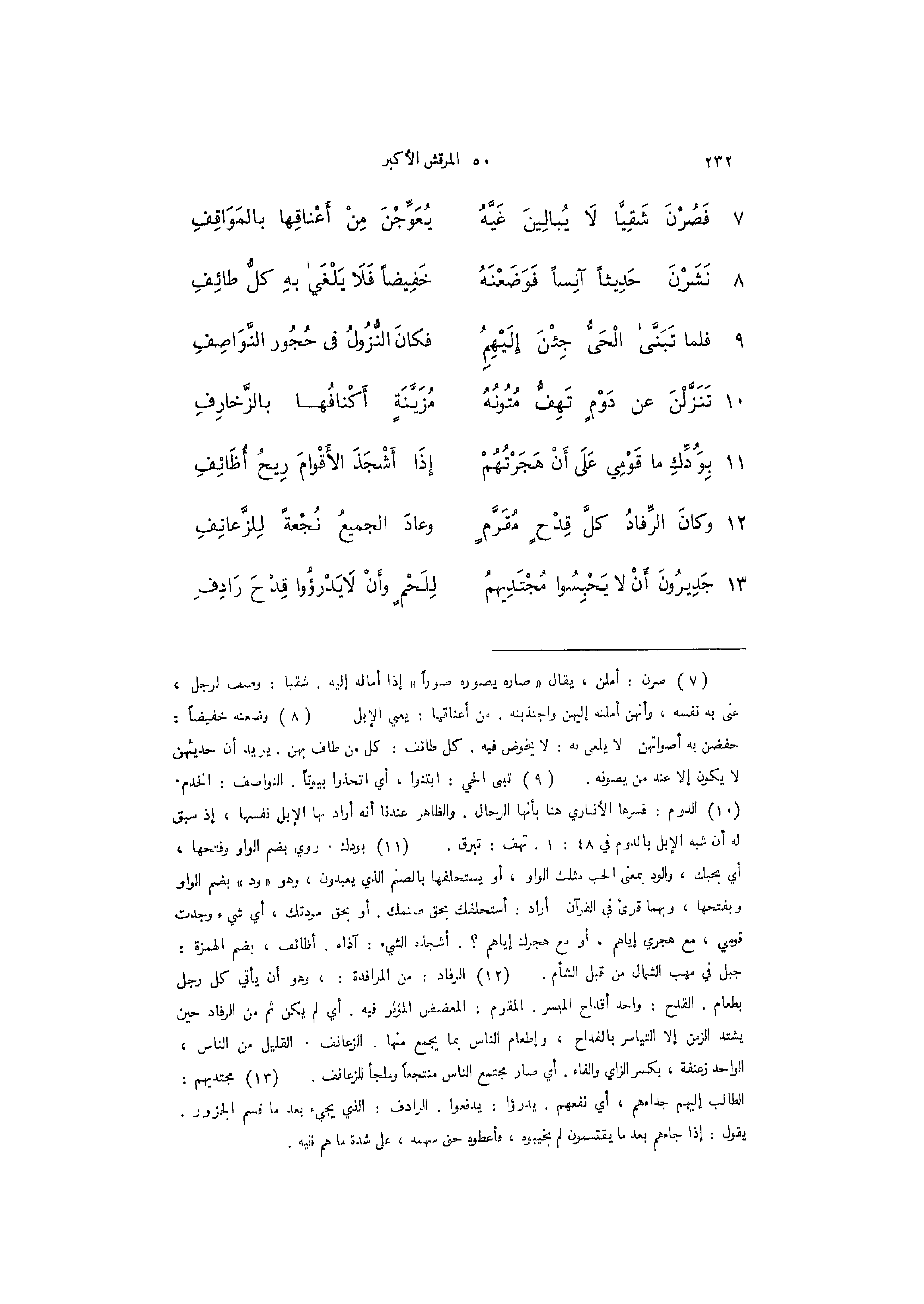 7 - (فَصُرْنَ شَقِيَّا لاَ يبالبن غَيَّهُ ... يُعَوِّجْنَ مِنْ أَعْناقِها بالمَوَاقِفِ)