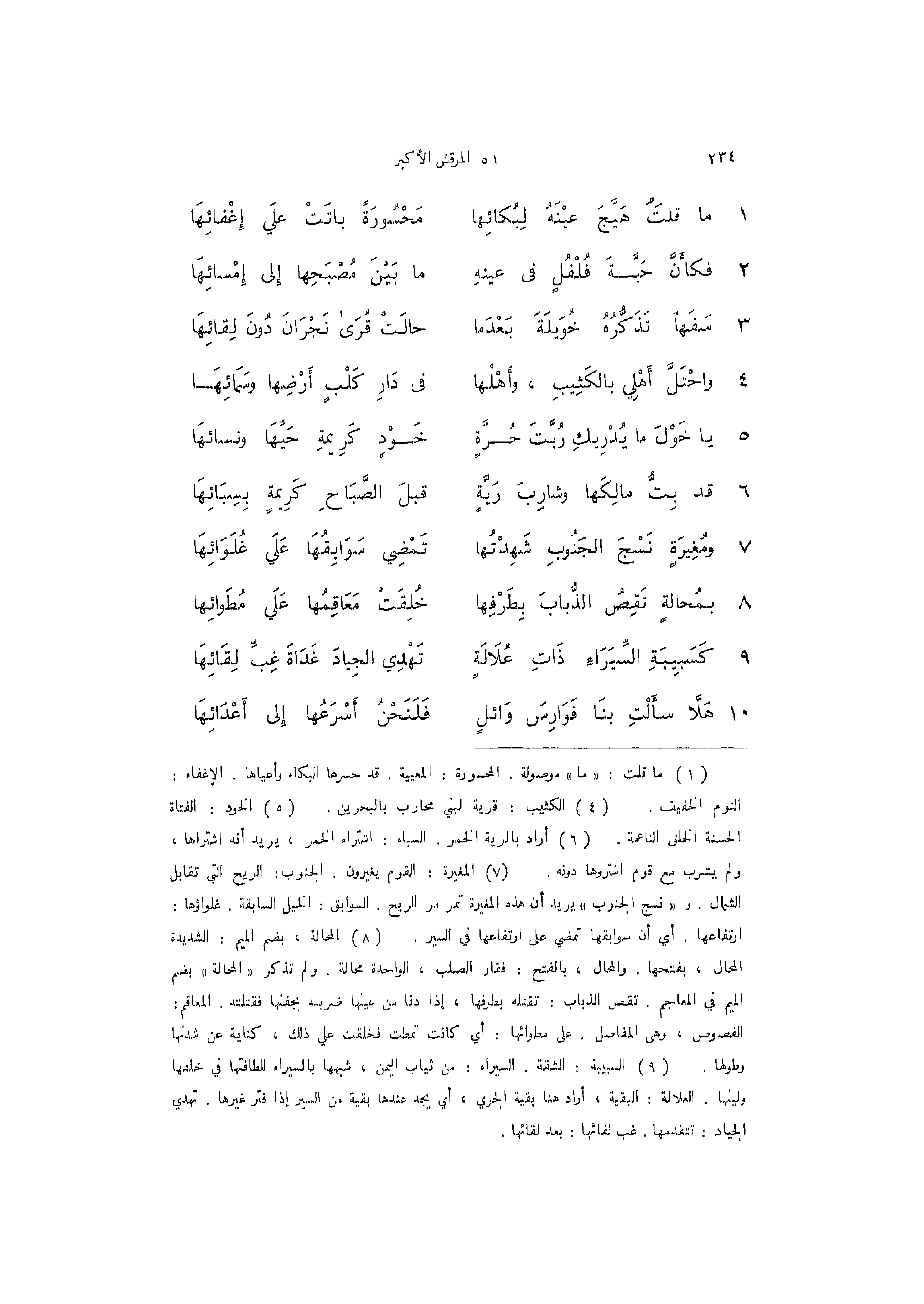1 - (ما قلتَ هَيَّجَ عيْنَهُ لِبُكائِها ... مَحْسُورَةً باتَتْ علَي إِغْفائِهَا)