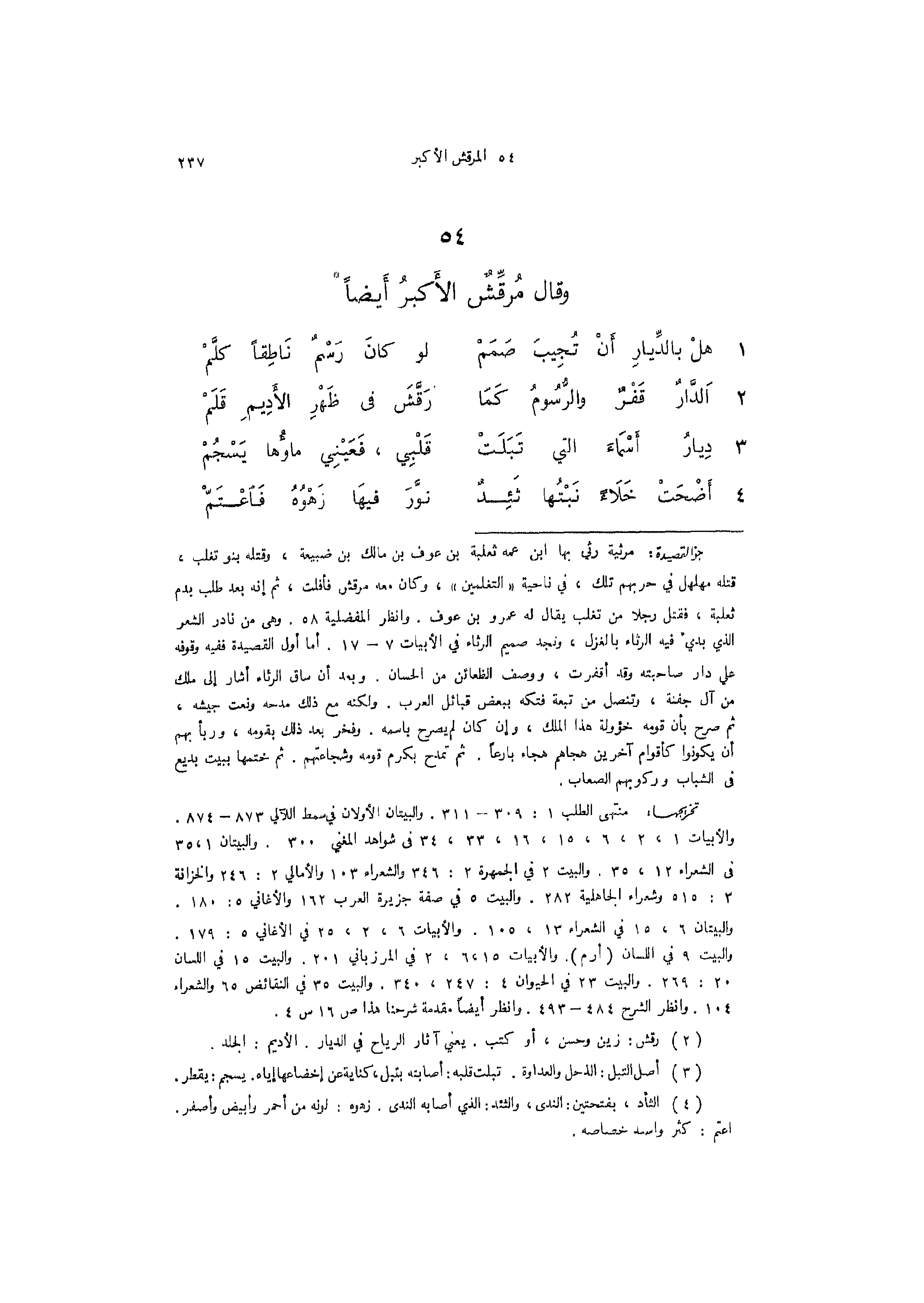 2 - (الدَّارٌ قَفْرٌ والرُّسُومُ كَمَا ... رَقَّشَ في ظَهْرِ الأّدِيمِ قَلَمْ)