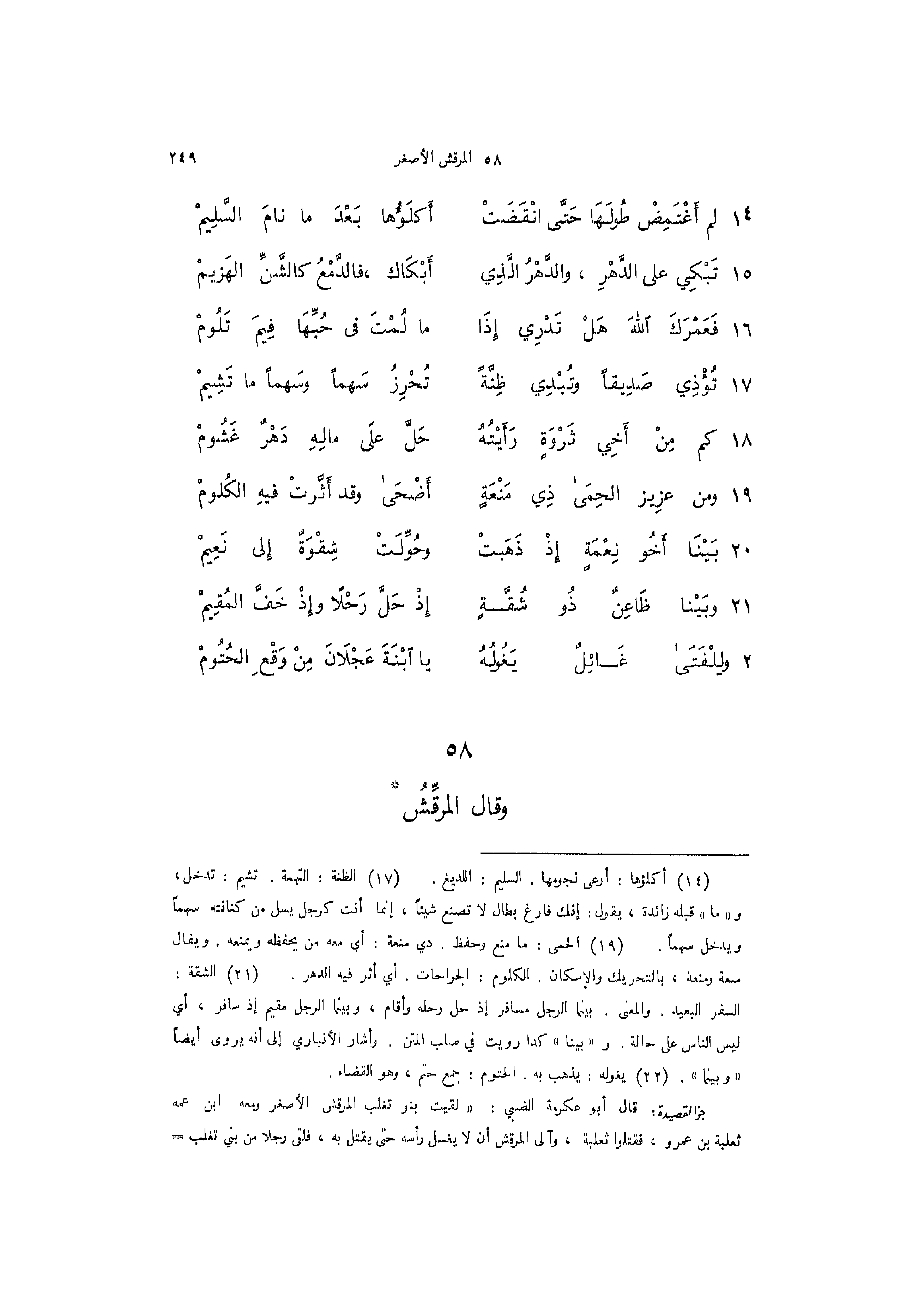 14 - (لم أغنمض طُولَهَا حَتَّى انْقَضَتْ ... أَكلَؤُها بَعْدَ ما نام السهم)