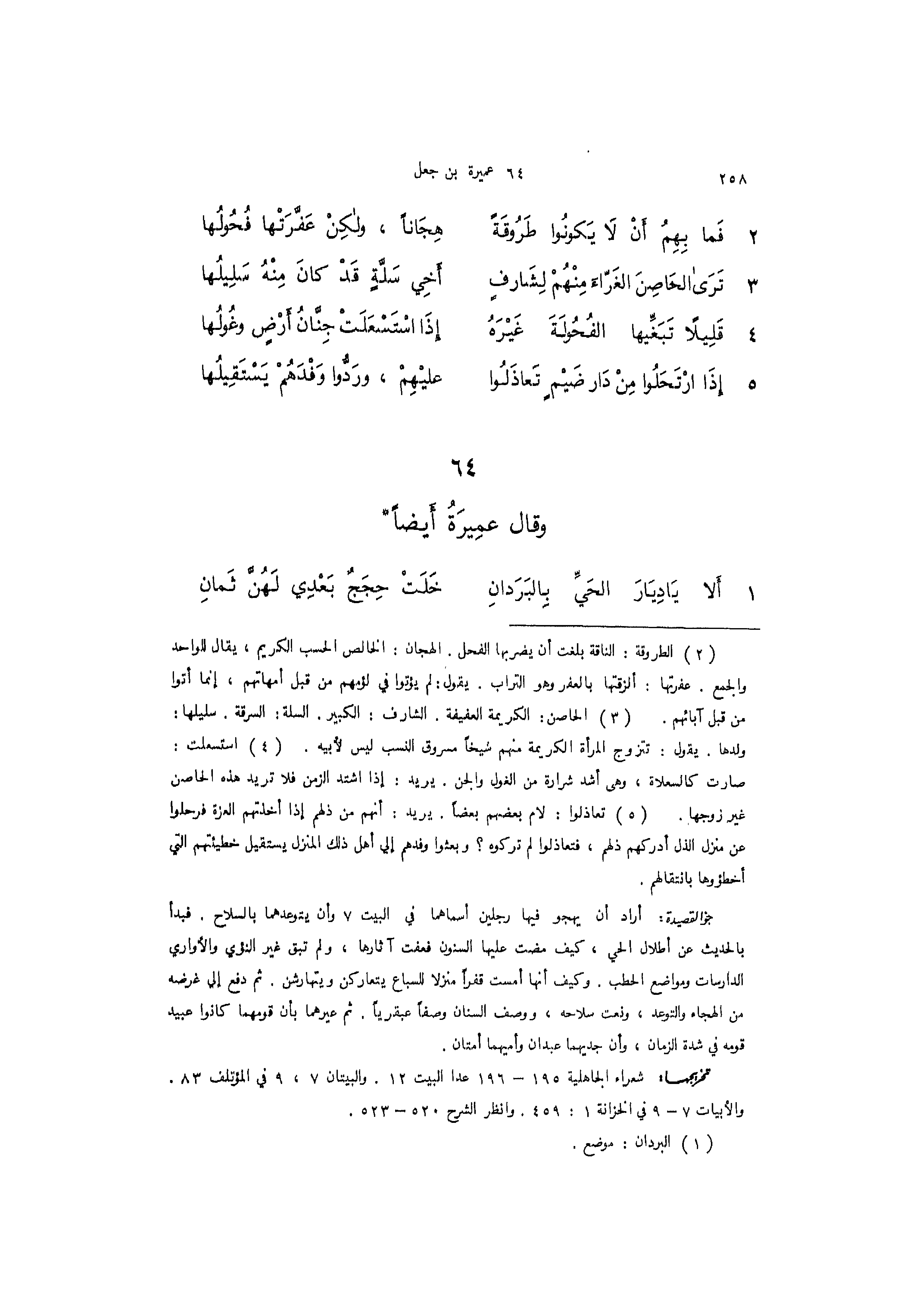2 - (فَما بِهِمُ أَنْ لاَ يَكونُوا طَرُوقَةً ... هِجَاناً ولكِنْ عَفَّرَتْها فُحُولُها)