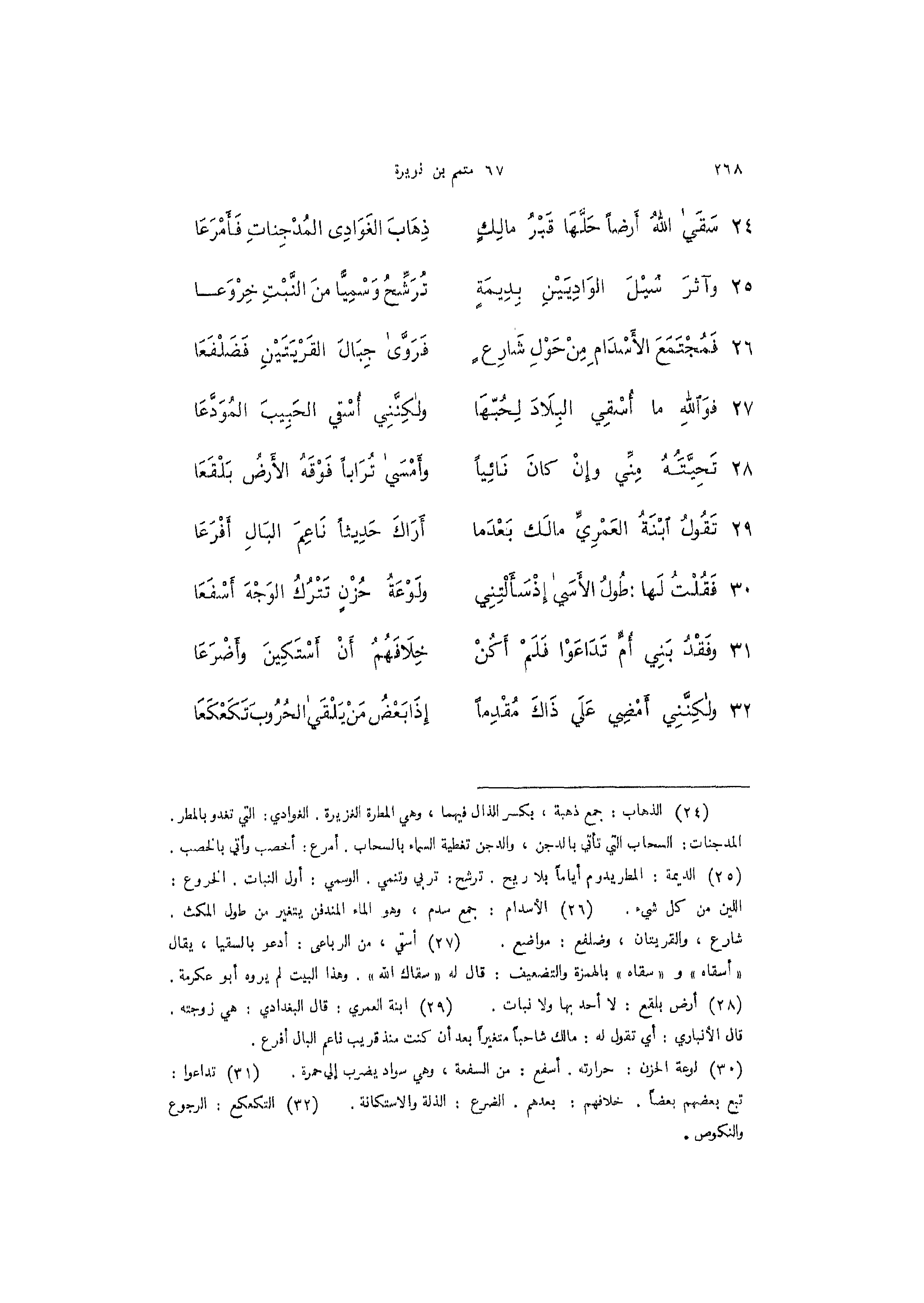 24 - (سَقَي اللهُ أَرضاً حَلَّهَا قَبْرُ مالِكٍ ... ذِهَابَ الغَوَادِي المُدْجِناتِ فَأَمْرَعَا)