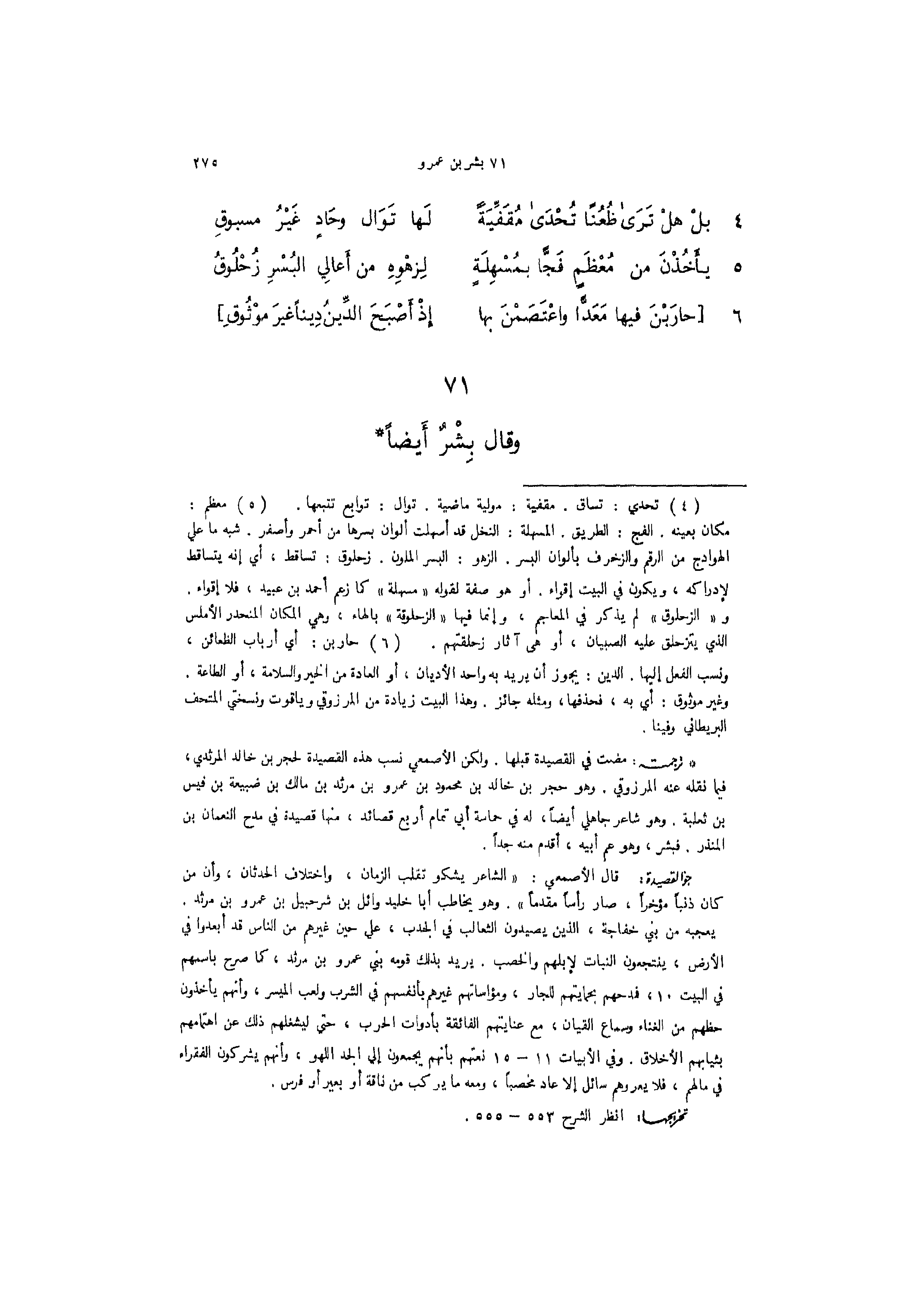 4 - (بلْ هلْ تَرَى ظُعُناً تُحْدَى مُقَفِّيَةً ... لَها تَوَال وحَادٍ غَيْرُ مسبوقِ)