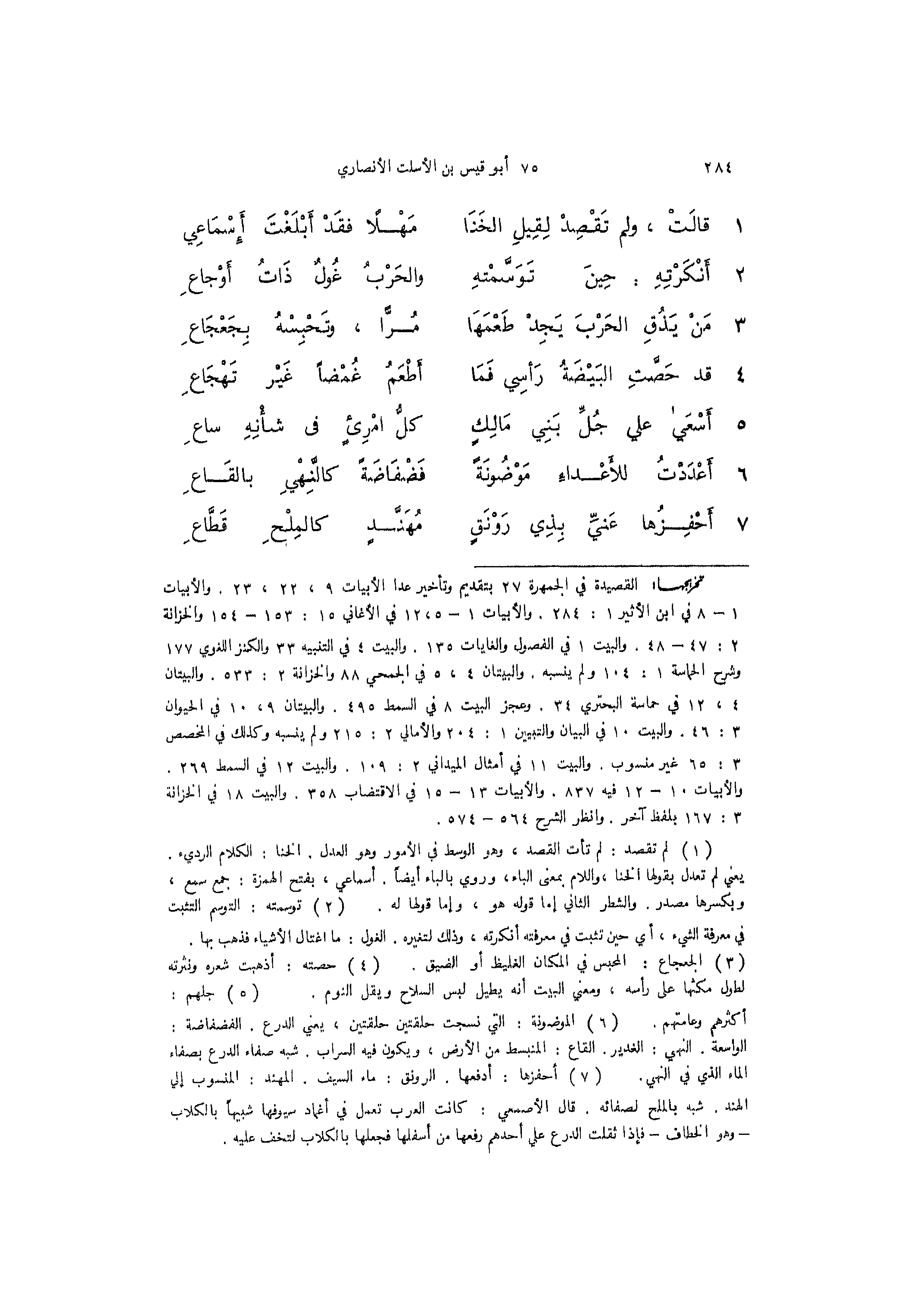2 - (أَنْكَرْتِهِ حِينَ تَوَسَّمْتهِ ... والحَرْبُ غُولٌ ذَاتُ أَوْجاعِ)