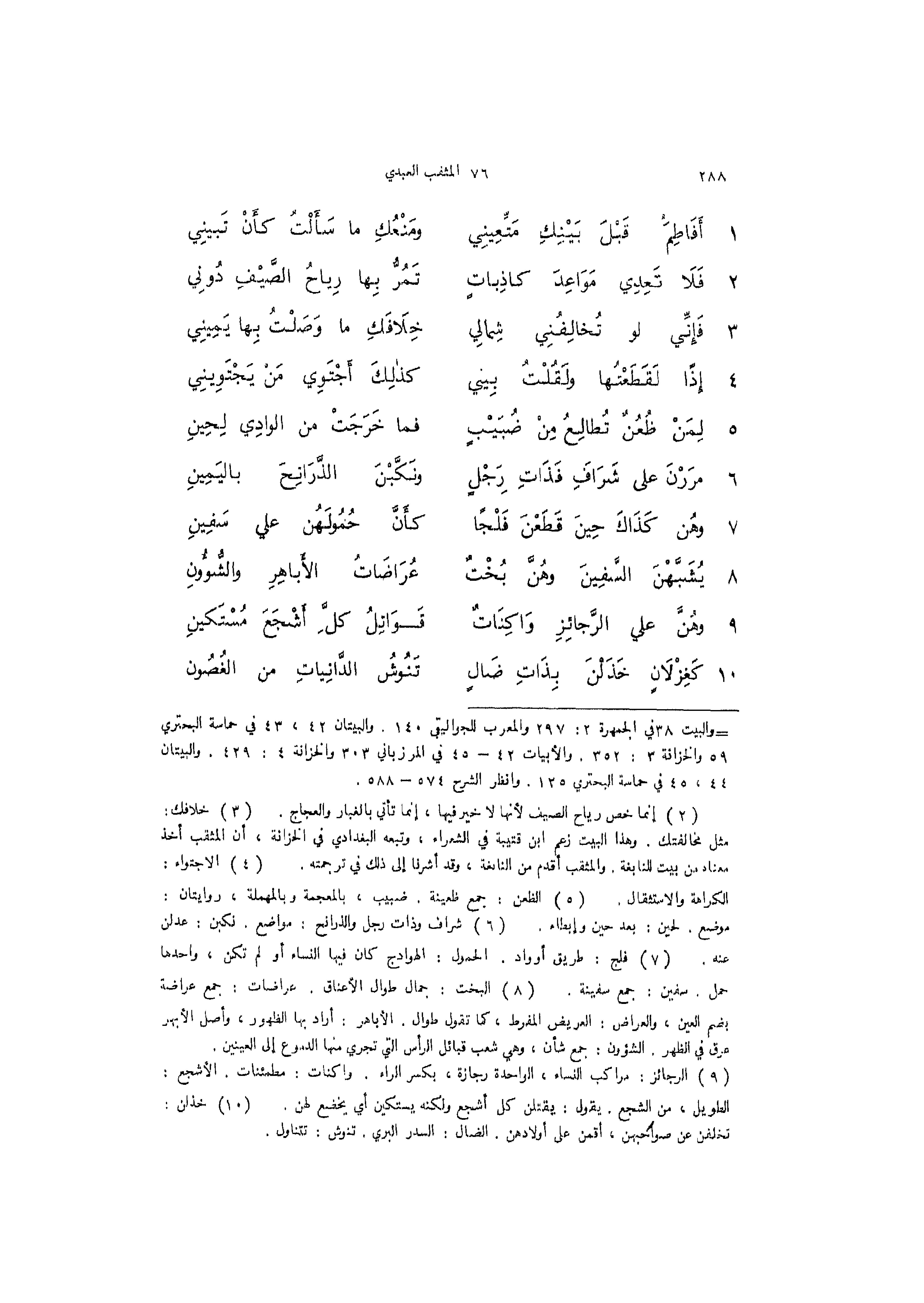 8 - (يُشَبَّهْنَ السَّفِينَ وهُنَّ بُخْتٌ ... عُرَاضَاتُ الأَباهِرِ والشُّؤُونِ)