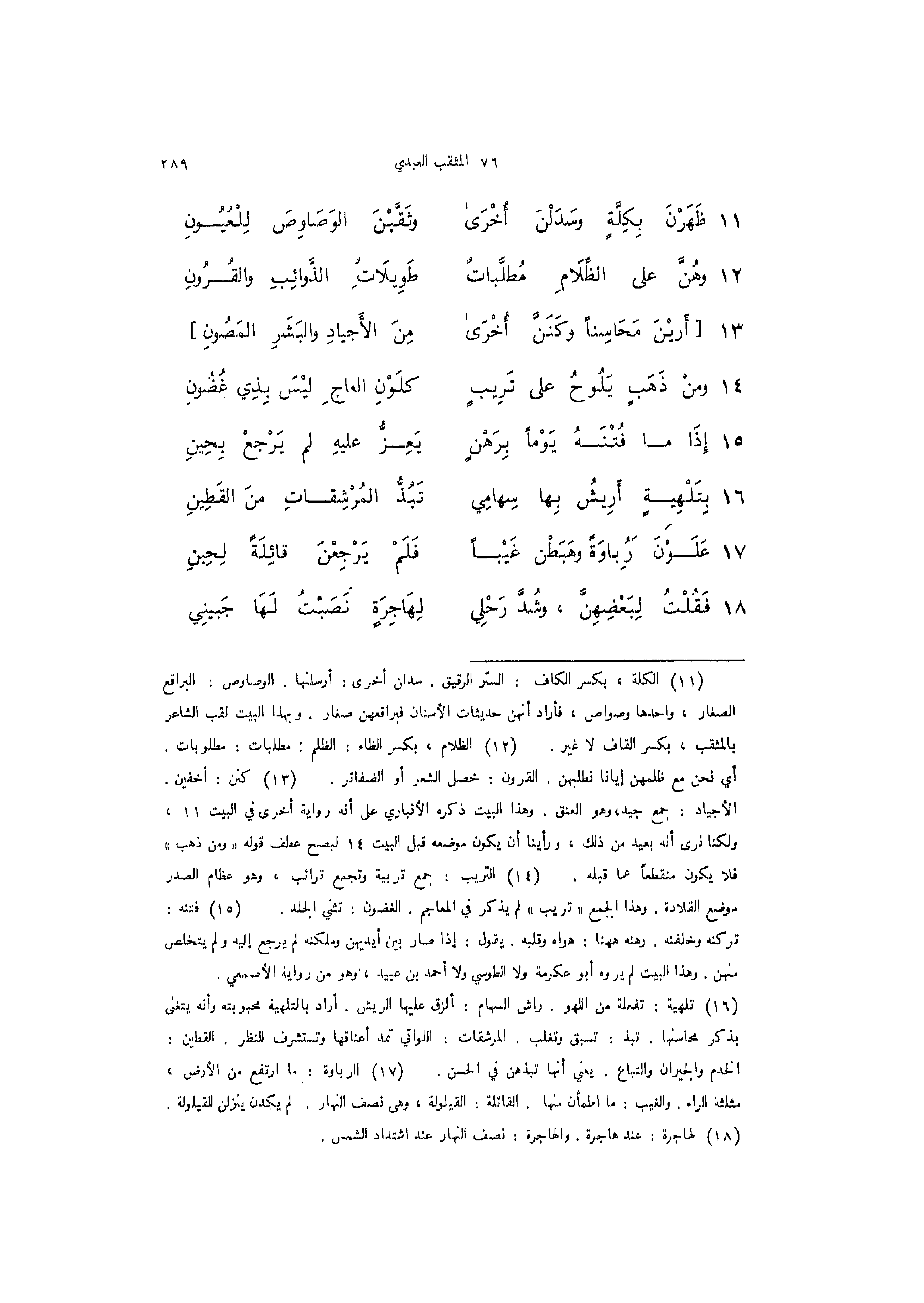 11 - (ظَهَرْنَ بِكِلَّةٍ وسَدَلْنَ أُخْرَى ... وثَقَّبْنَ الوَصَاوِصَ لِلْعُيُونِ)