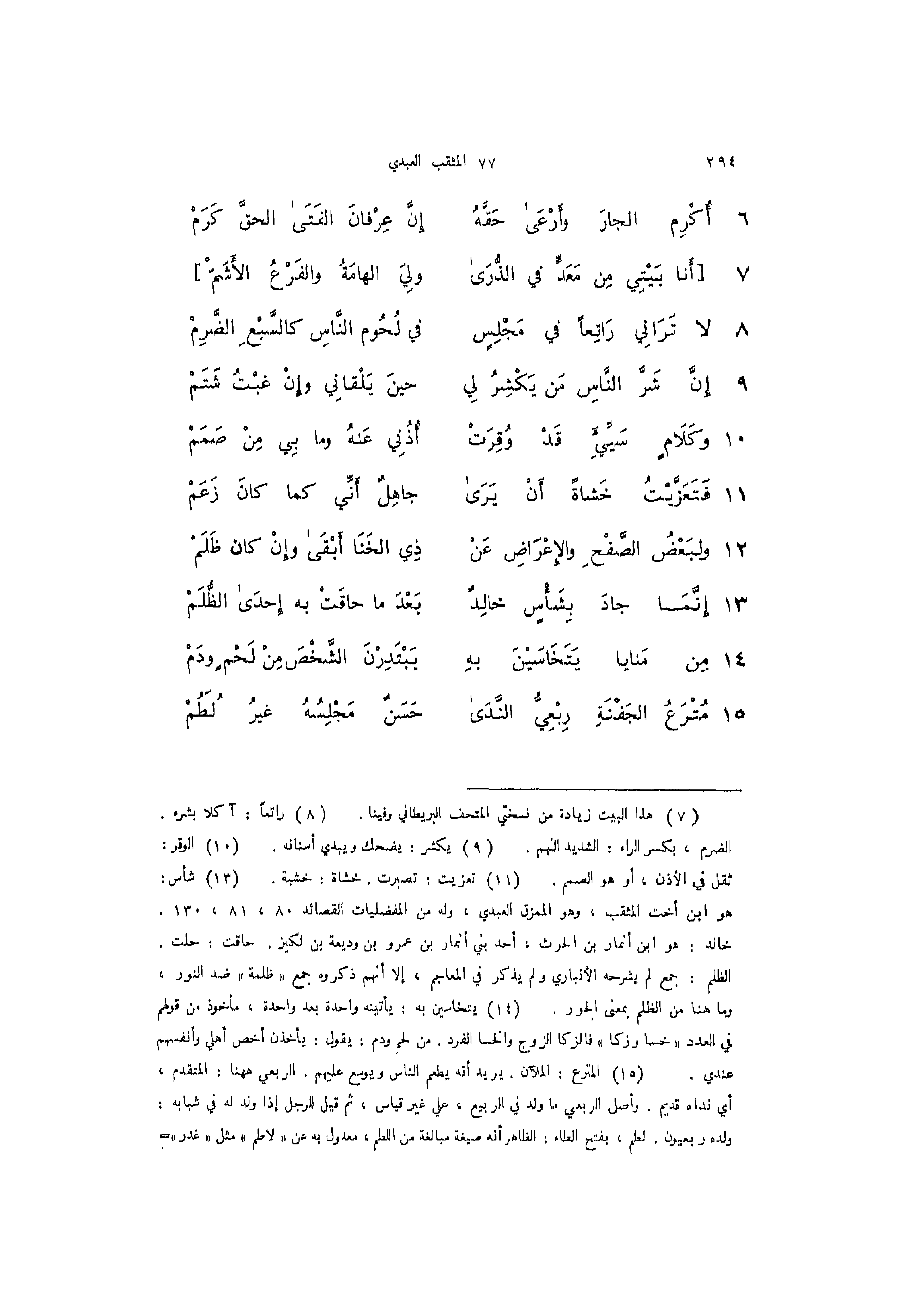 8 - (لا تَرَانِي رَاتِعاً في مَجْلِسٍ ... في لُحُوم النَّاسِ كالسَّبْعِ الضَّرِمْ)
