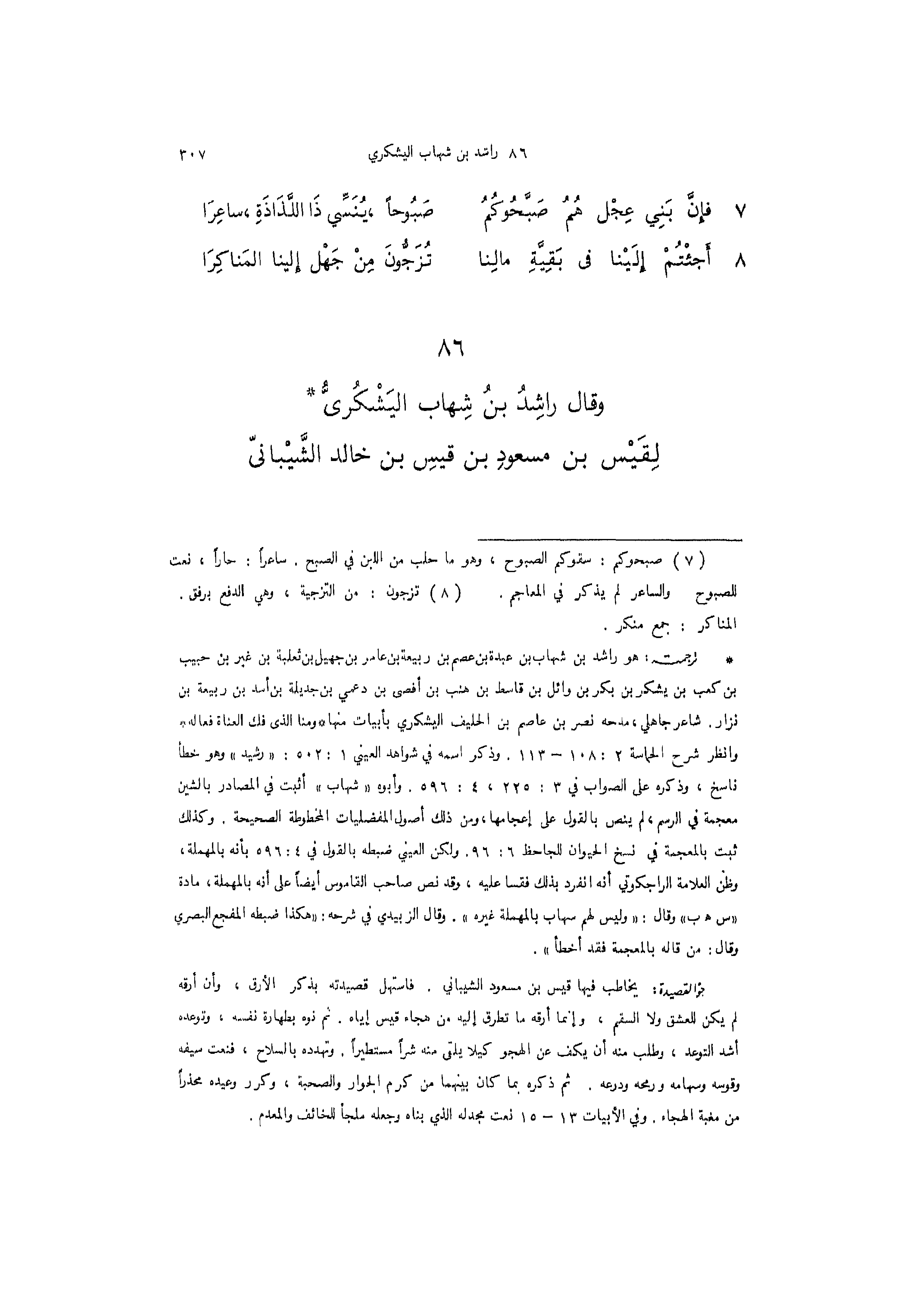 (86) وقال راشد بن شهاب اليشكري لقيس بنَ مسعودِ بنِ قيس بن خالد الشيباني
