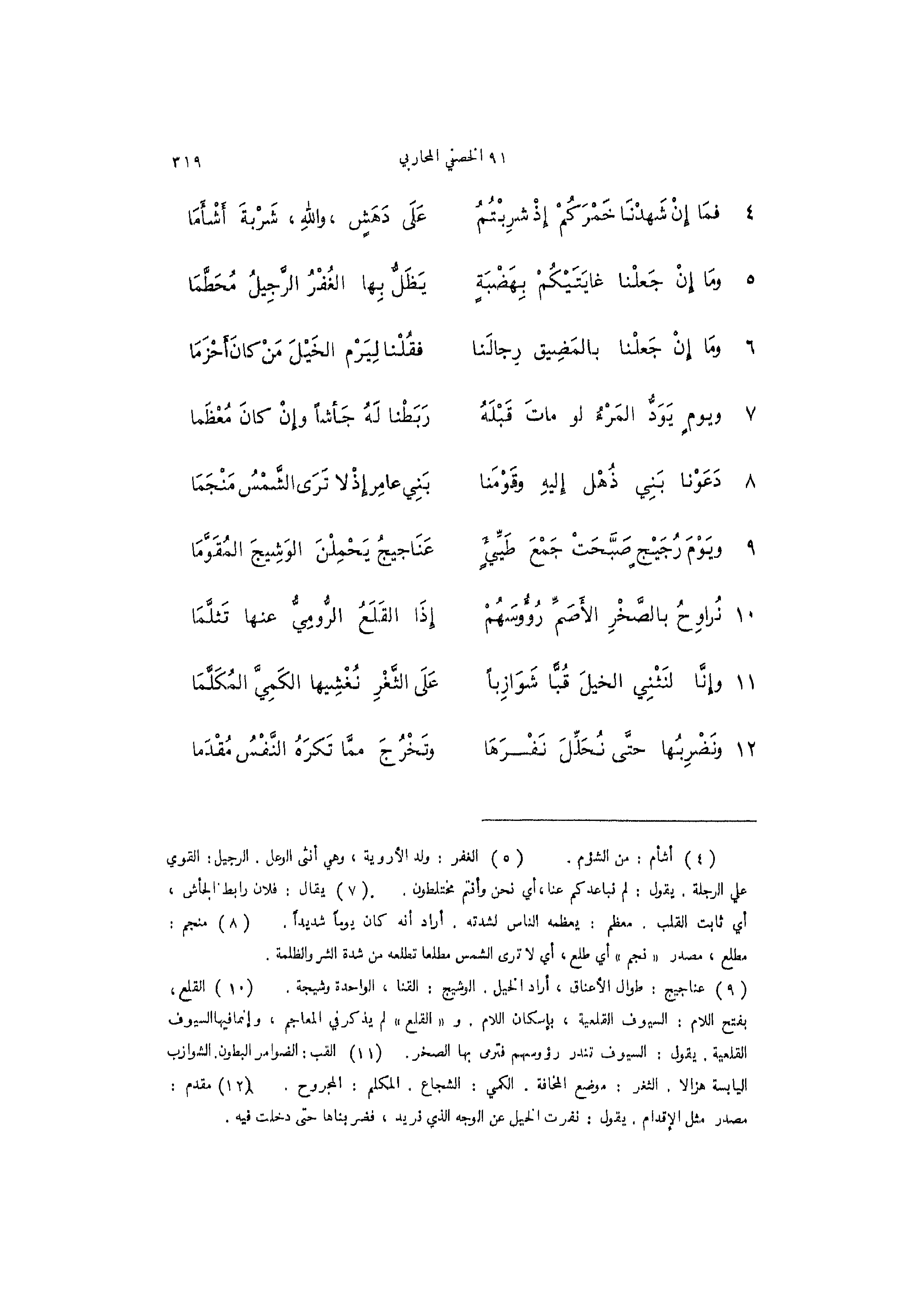 8 - (دَعَوْنا بَنِي ذُهْل إِليهِ وقَوْمَنا ... بَنِي عامِر إِذْ لا تَرَى الشَّمْسُ مَنْجَمَا)