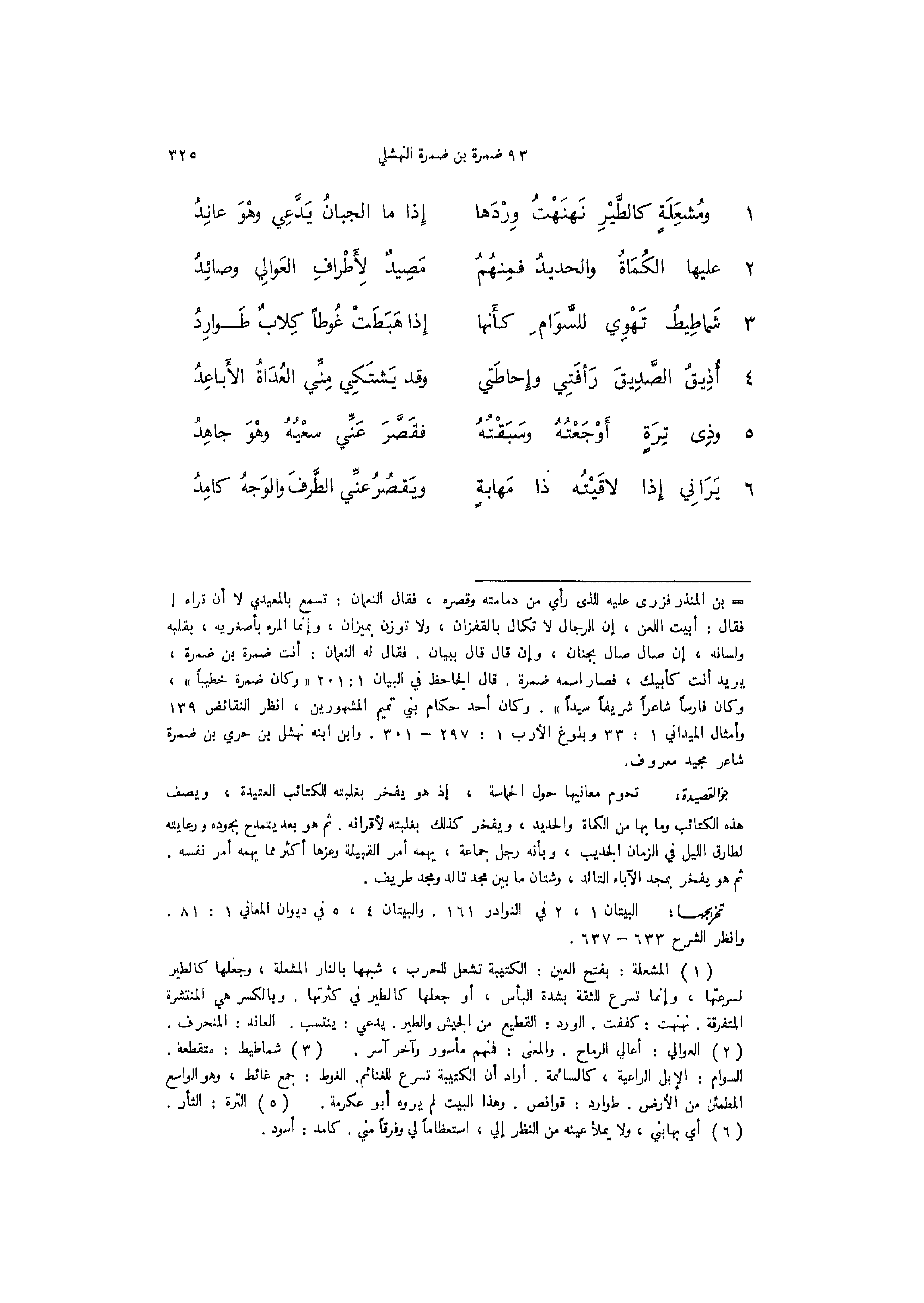 1 - (ومُشعَلَةٍ كالطَّيْرِ نَهنَهْتُ وِرْدَها ... إِذا ما الجبانُ يَدَّعِي وهْوَ عانِدُ)