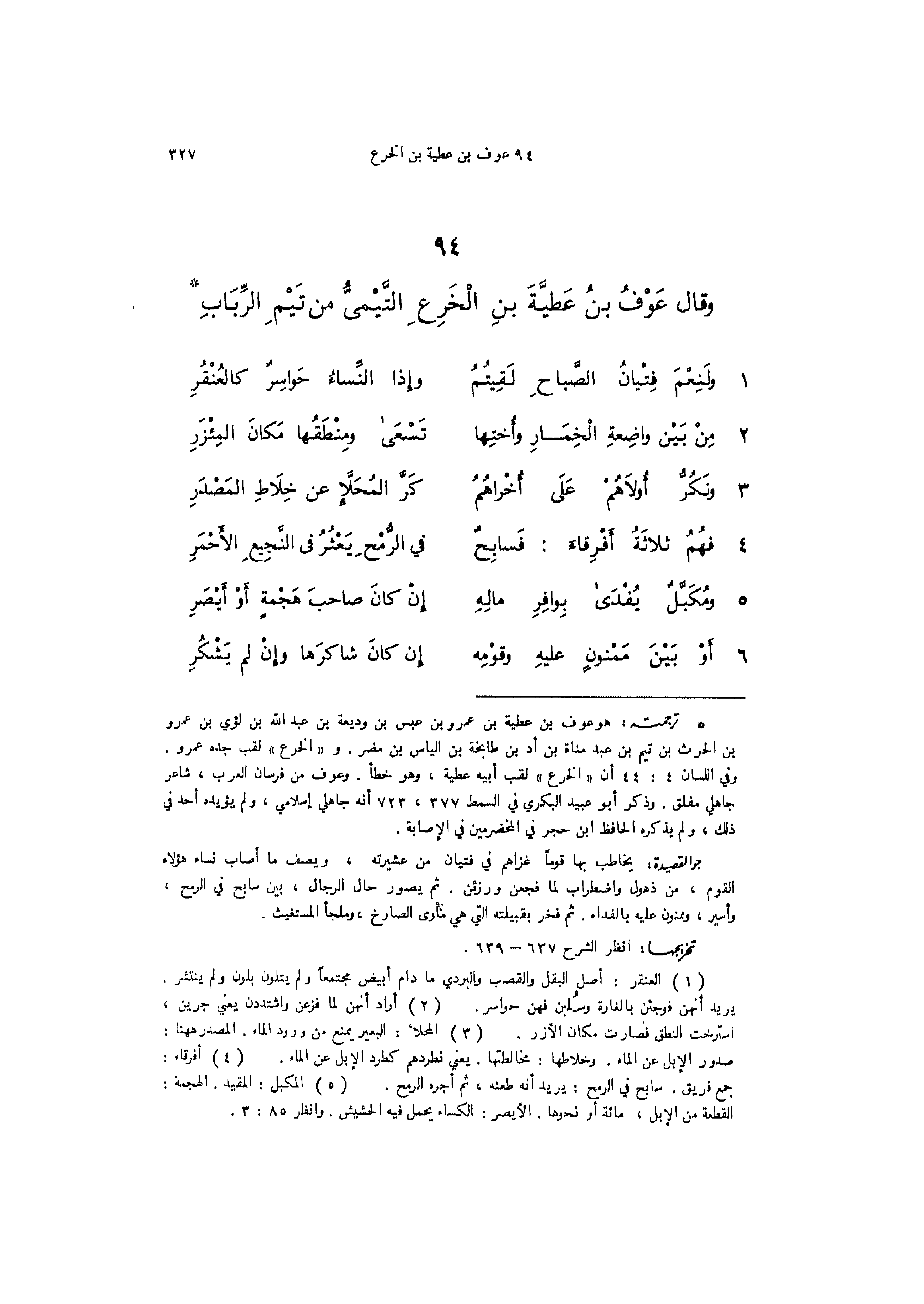 (94) وقال عوف بن عطية بن الخرع التيمي من تيم الرباب