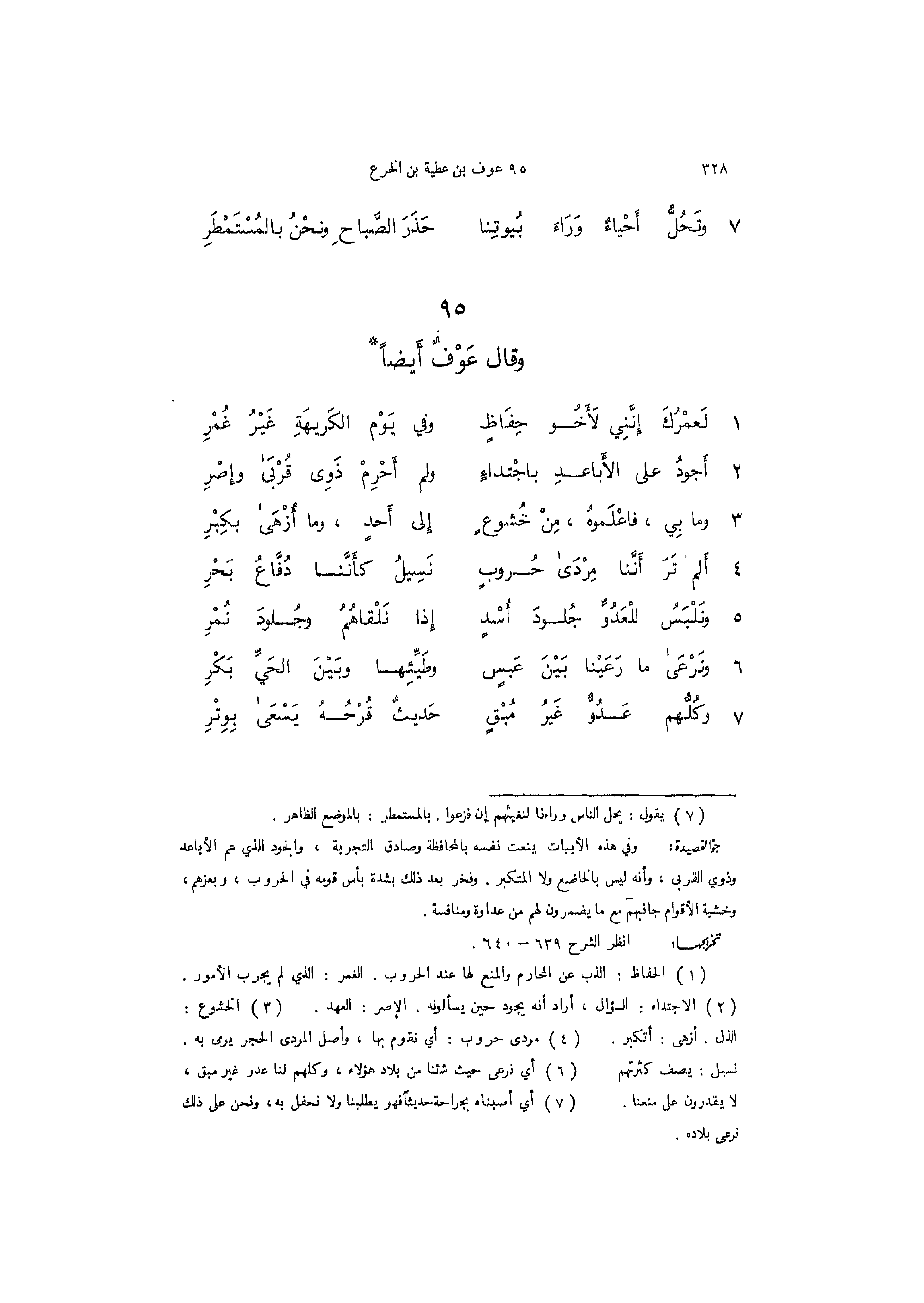 4 - (أَلم تَرَ أَنَّنا مِرْدَى حُروبٍ ... نَسِيلُ كأَنَّنا دُفَّاعُ بَحْرِ)