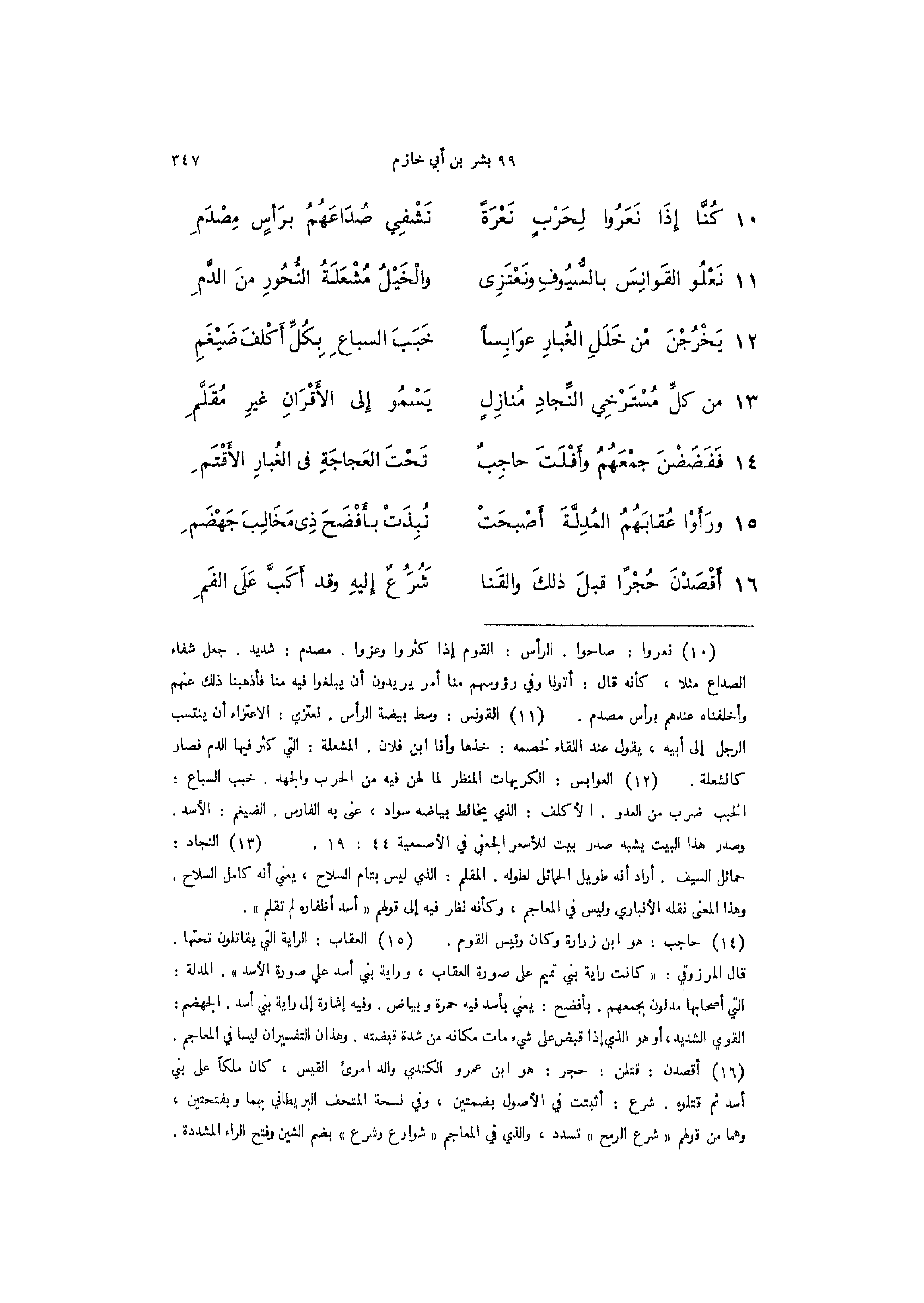 11 - (نَعْلُو القَوانِسَ بالسُّيُوفِ ونعتزي ... والخيل مُشْعَلَةُ النُّحُورِ منَ الدَّمِ)