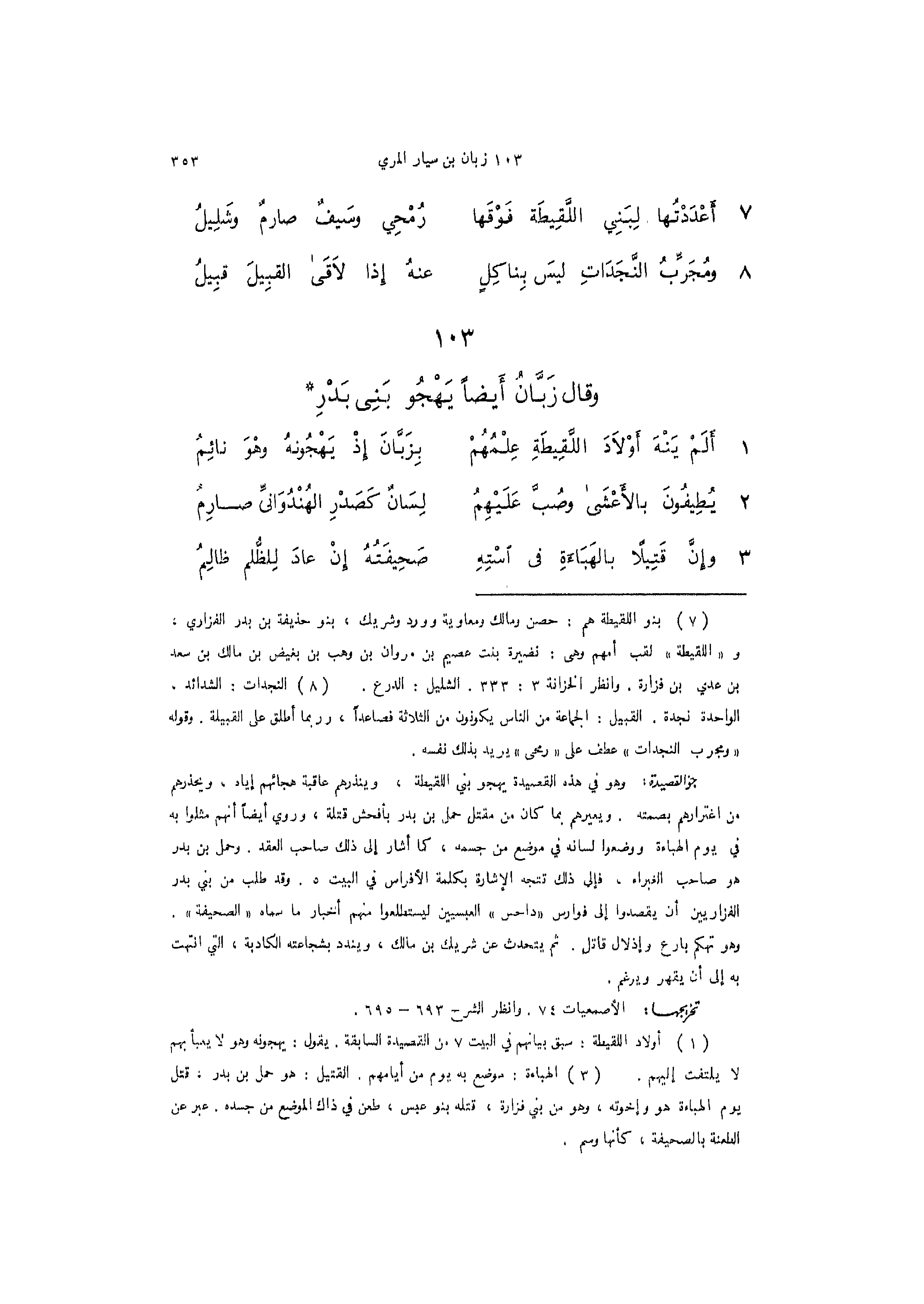 (103) وقال زبان أيضاً يهجو بني بدر