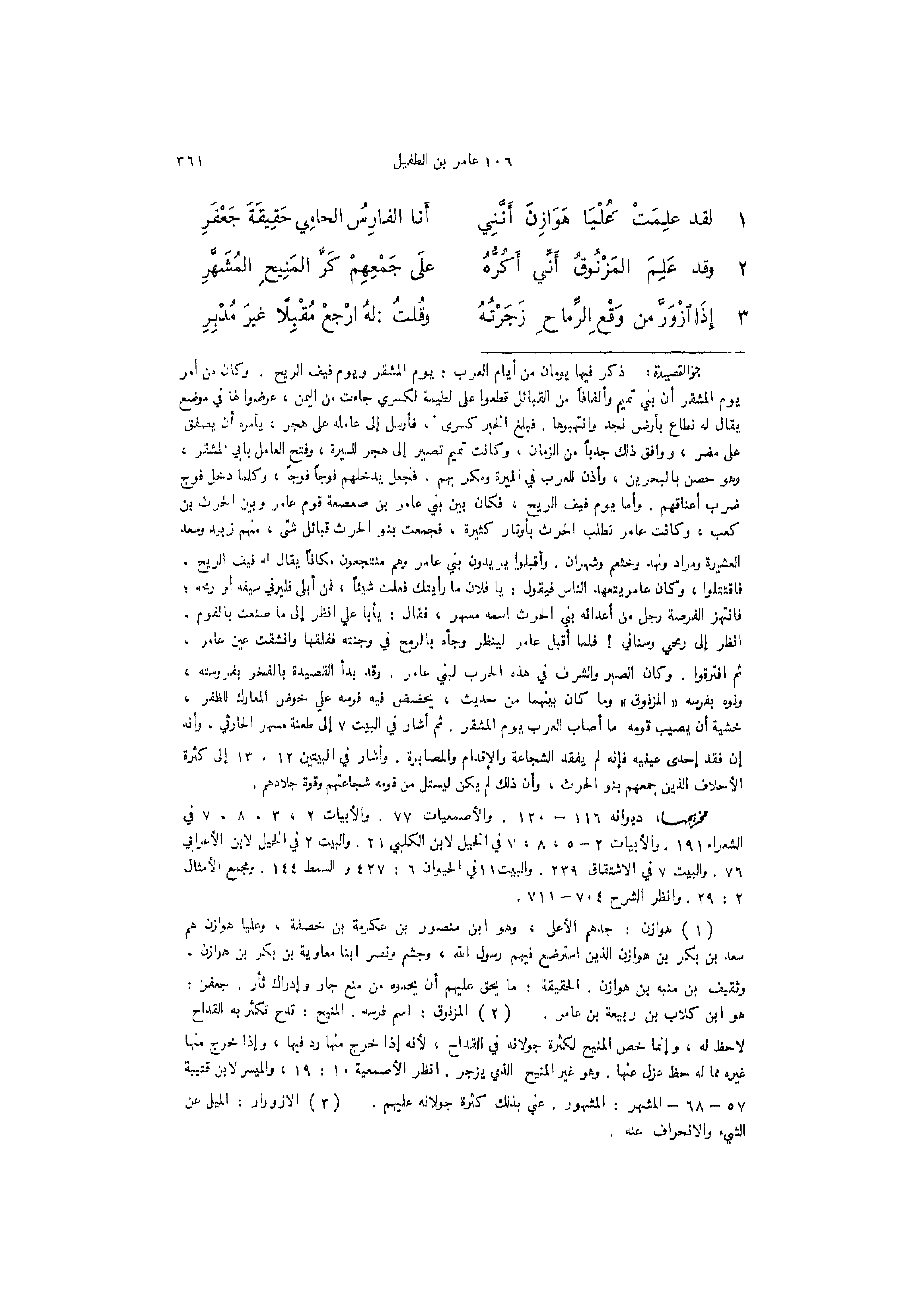 1 - (لقد عَلِمَتْ عُلْيَا هَوَازِنَ أَنَّنِي ... أَنا الفارِسُ الحامِي حَقِيقَةَ جَعْفَرِ)