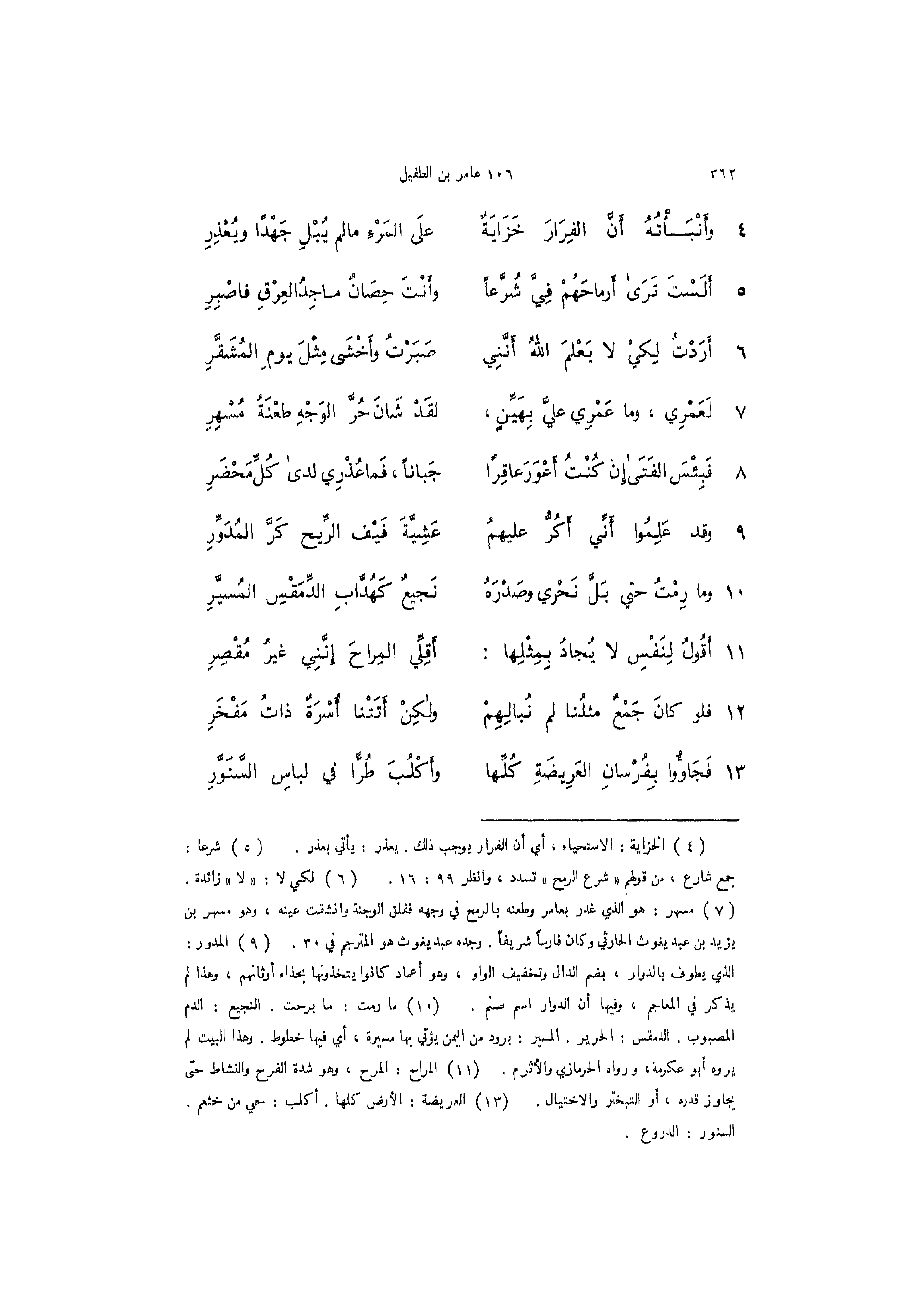 7 - (لَعَمْرِي وما عَمْرِي عليَّ بِهَيِّنٍ ... لقَدْ شَانَ حُرَّ الوَجْهِ طعْنَةً مُسْهِرِ)