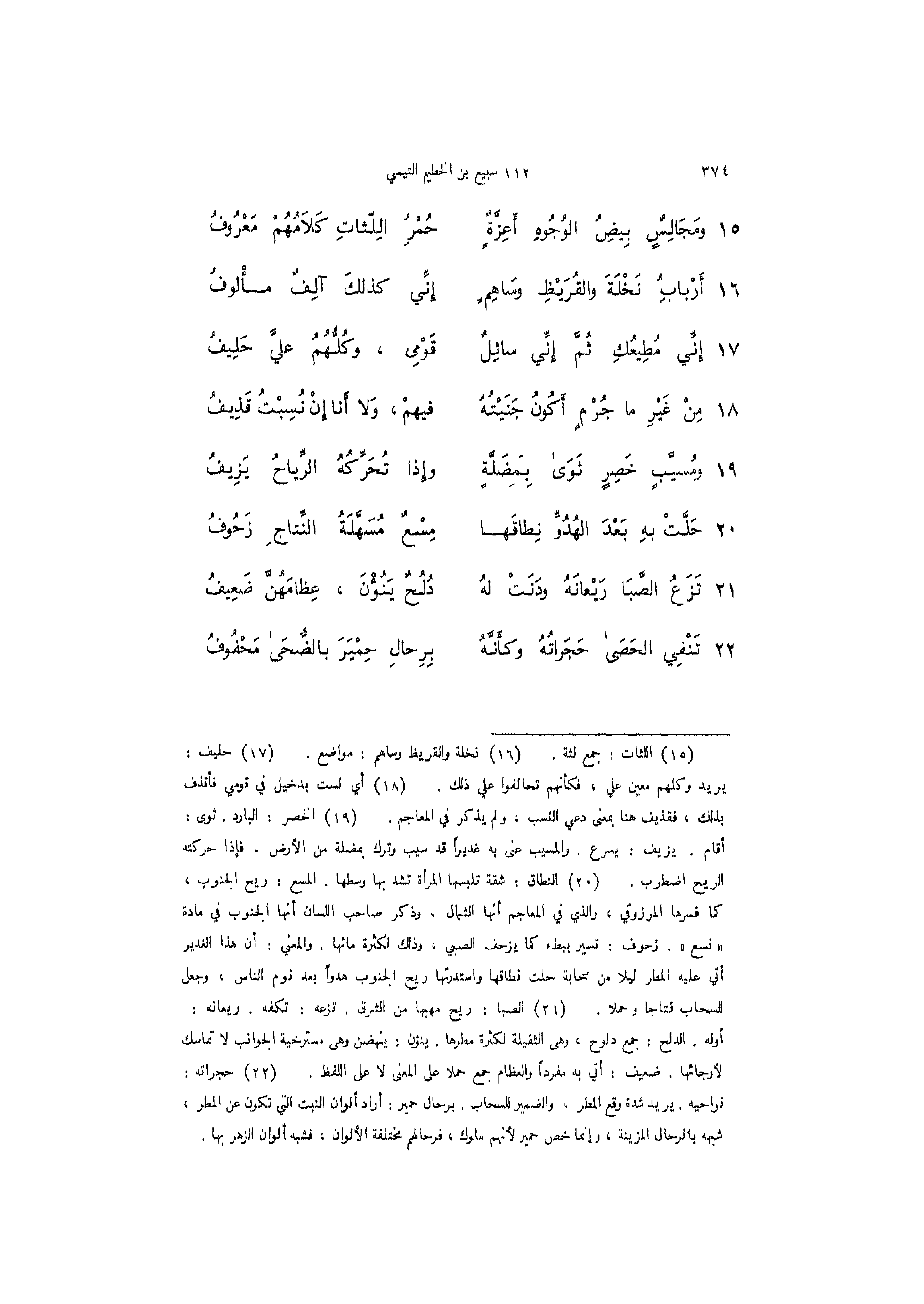 22 - (تَنْفِي الحَصَى حَجَراتُهُ وكأَنَّهُ ... بِرِحالِ حِمْيَرَ بالضحى محفوف)
