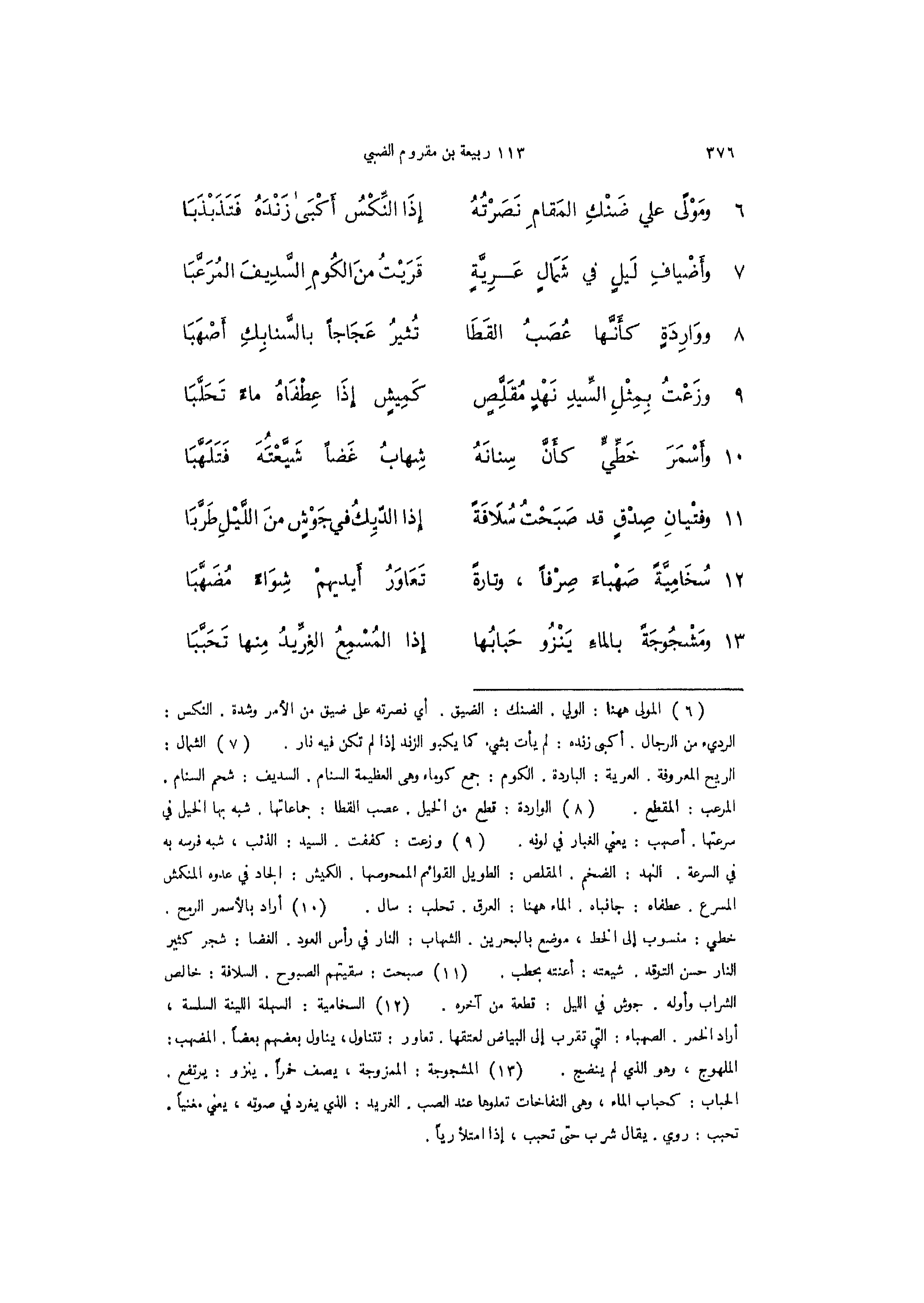 7 - (وأَضْيافِ لَيلٍ في شَمَالٍ عَرِيَّة ... قَرَيْتُ منَ الكُومِ السَّدِيفَ المُرَعَّبَا)