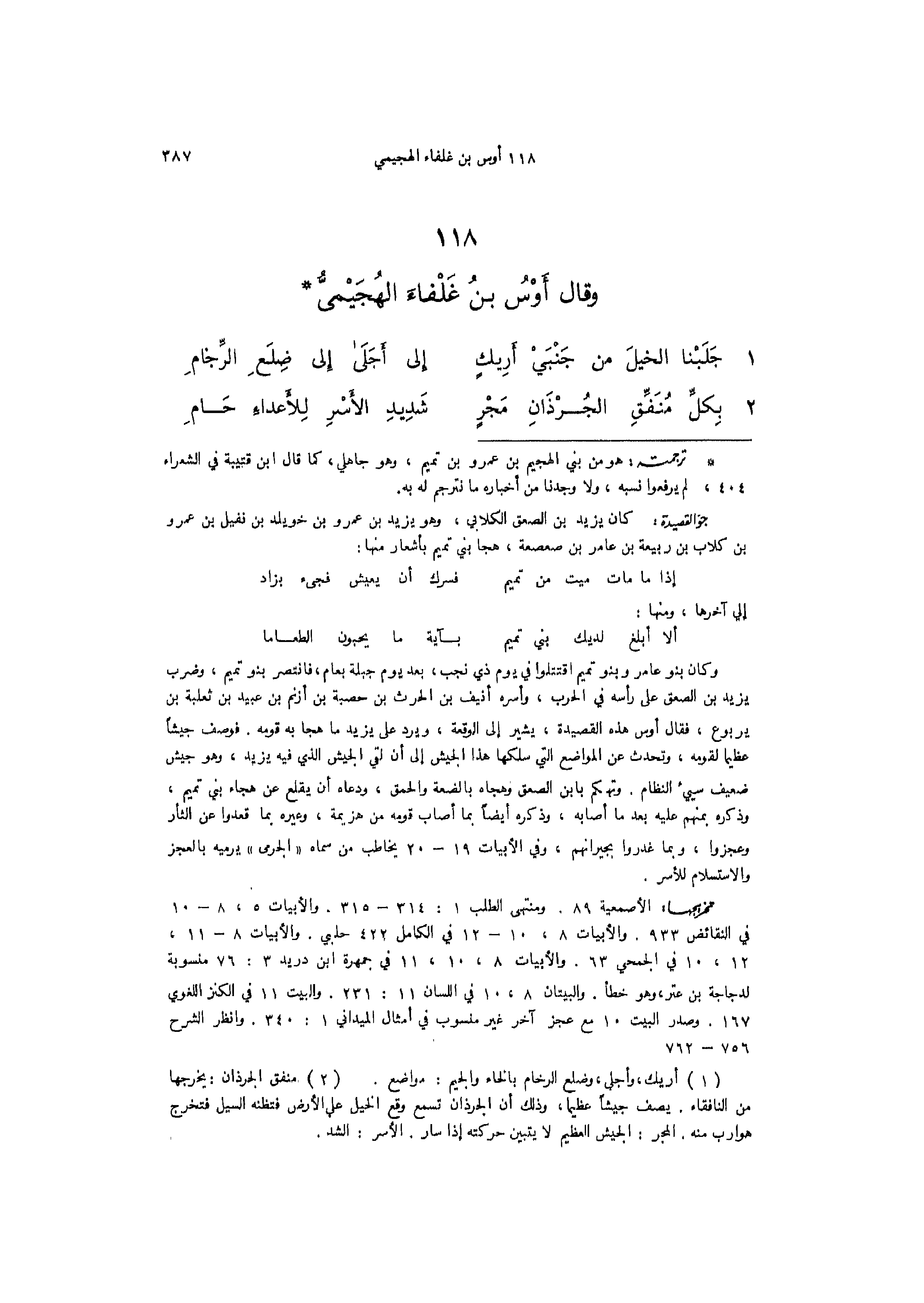1 - (جلبنا الخيل من جنبي أريك ... إلى أجلى إلى ضلع الرجام)